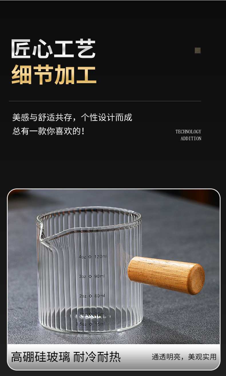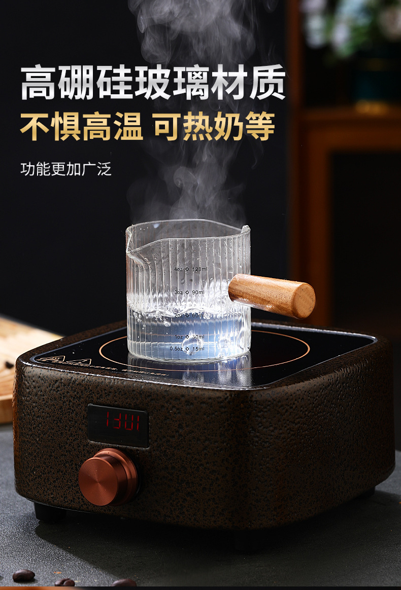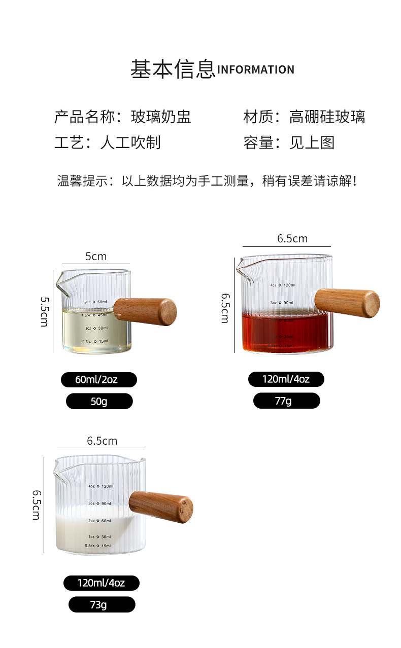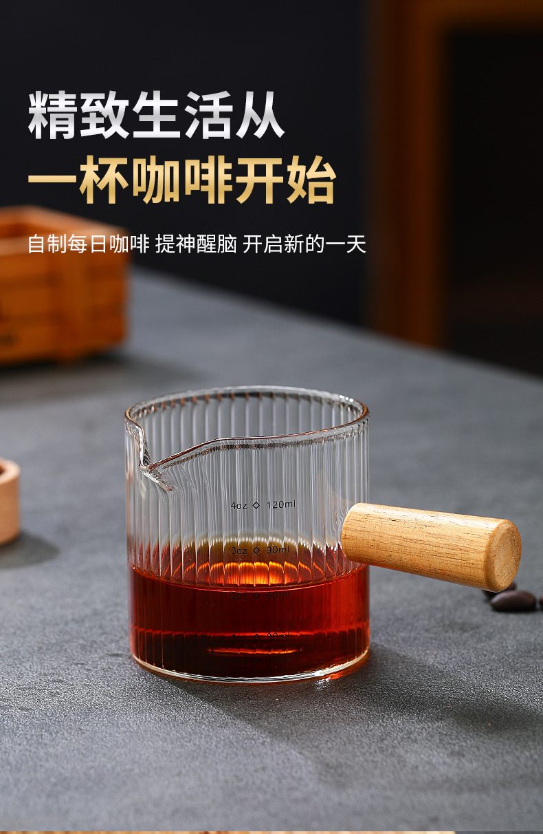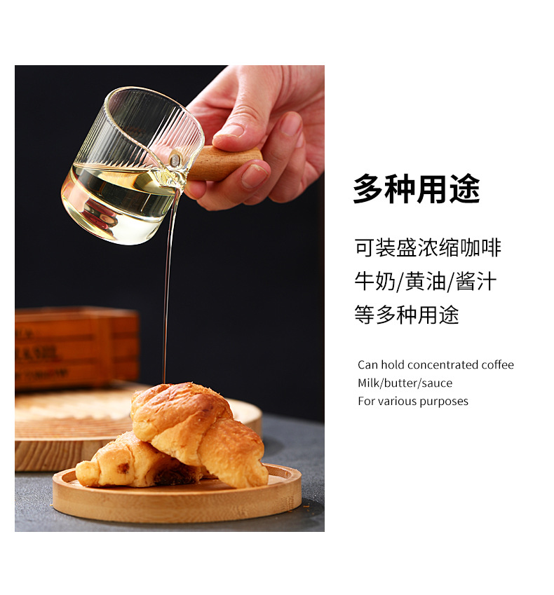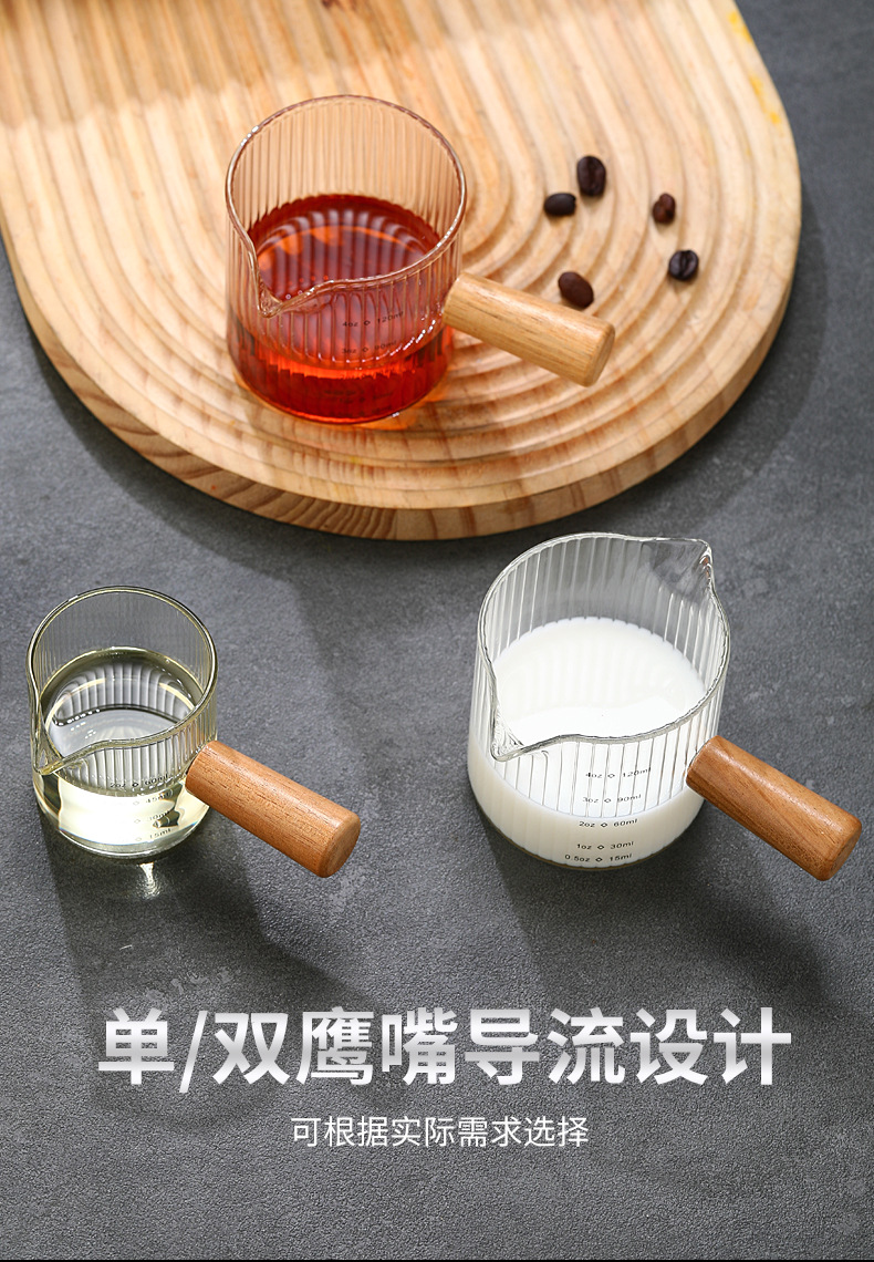 Стеклянная кофейная мерная чаша в итальянском стиле с вертикальными полосами, маленькая молочная кружка, мини-чайник для молока, деревянная ручка, двойной носик, маленький чайник для молока и кофе
