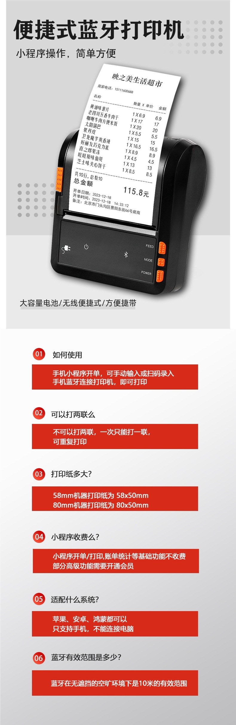 Принтер Для Выездного Кейтеринга, Портативный Быстрый Пакетный Тележка Для Мобильной Печати Чеков, 80 мм Термальная Печать Чеков