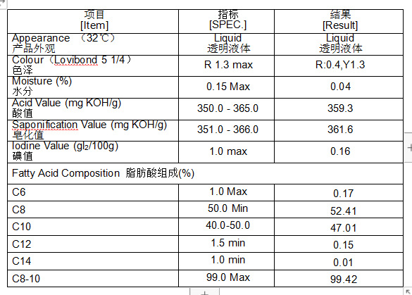 - 主要成分:C8正辛酸(cas号124-07-2);C10正癸酸(cas号334-48-5)8+10酸≥99%