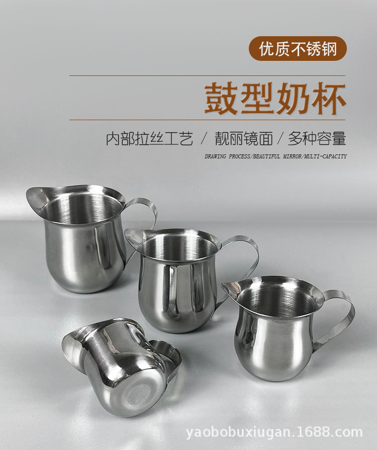 Кросс-бордерная маленькая молочная кружка в форме барабана из нержавеющей стали, чаша для эспрессо, латте-арт, мерная чаша, молочная чаша, ведро для сока в западном стиле, чаша для соуса