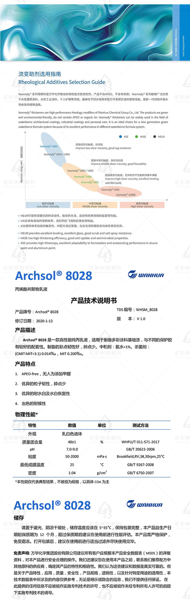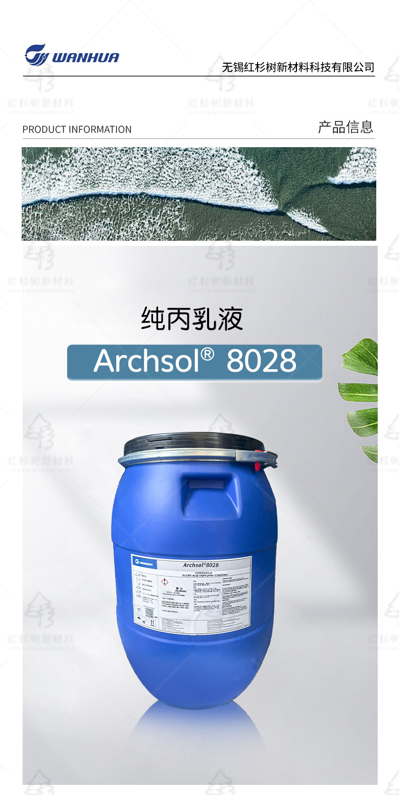 Wanhua Archsol 8028 высокоэффективная чистая акриловая эмульсия 8028, акриловая сополимерная эмульсия