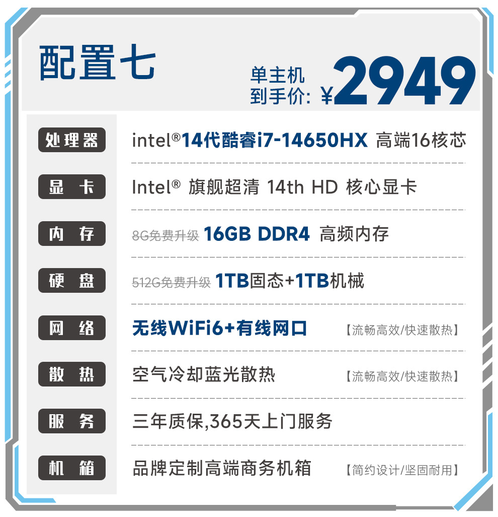 ![]() | Set 7: 14th generation core i7/16g/2t hard drive | ¥2949.0 / ≈ 35 522 ₽ | 99 | 5947992376761 |