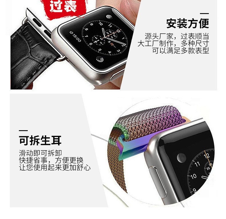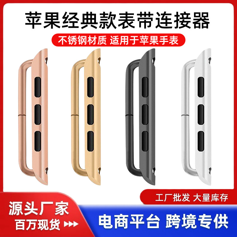 苹果经典款连接器是不锈钢材质,适配手表型号说明: