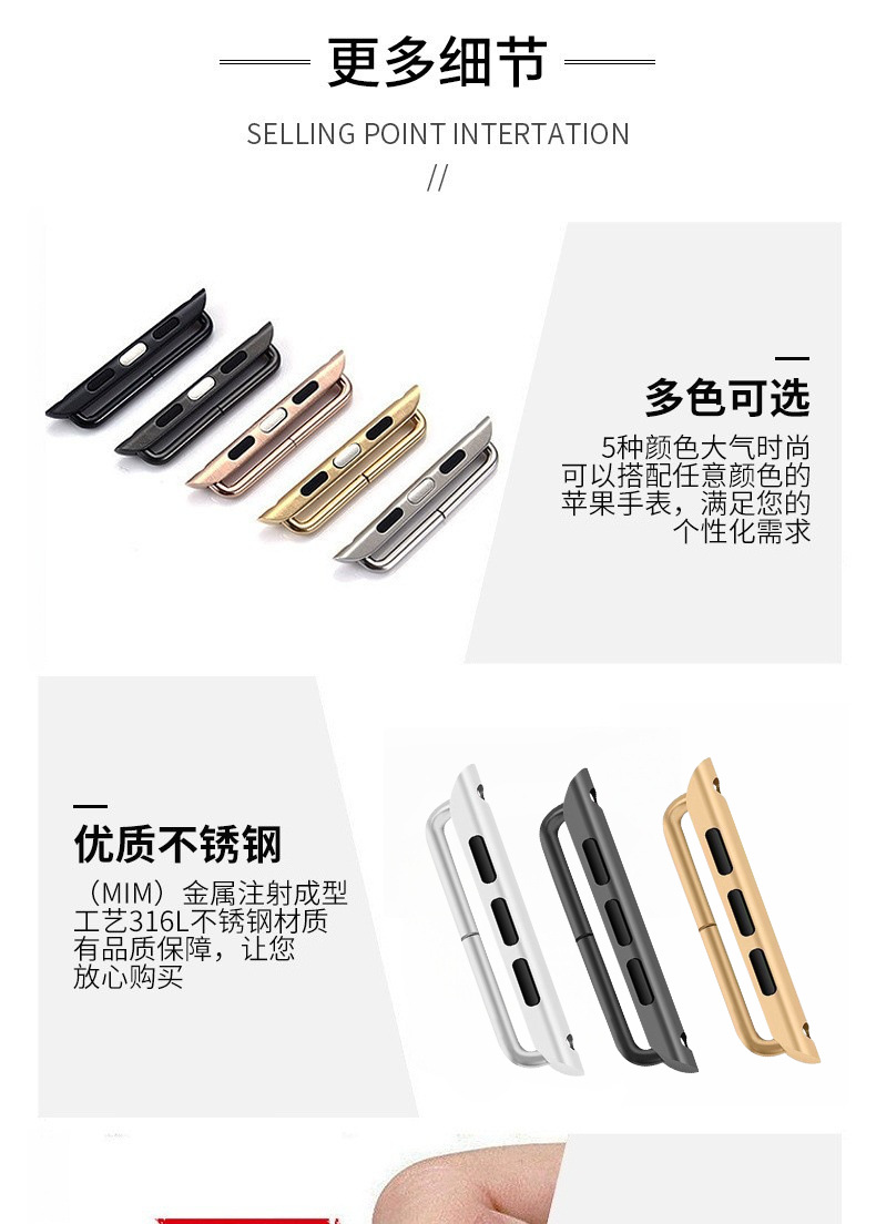 1、38/42mm连接器,适用于iwatch1/2/3/4/5/6/7/8/9代SE苹果手表带