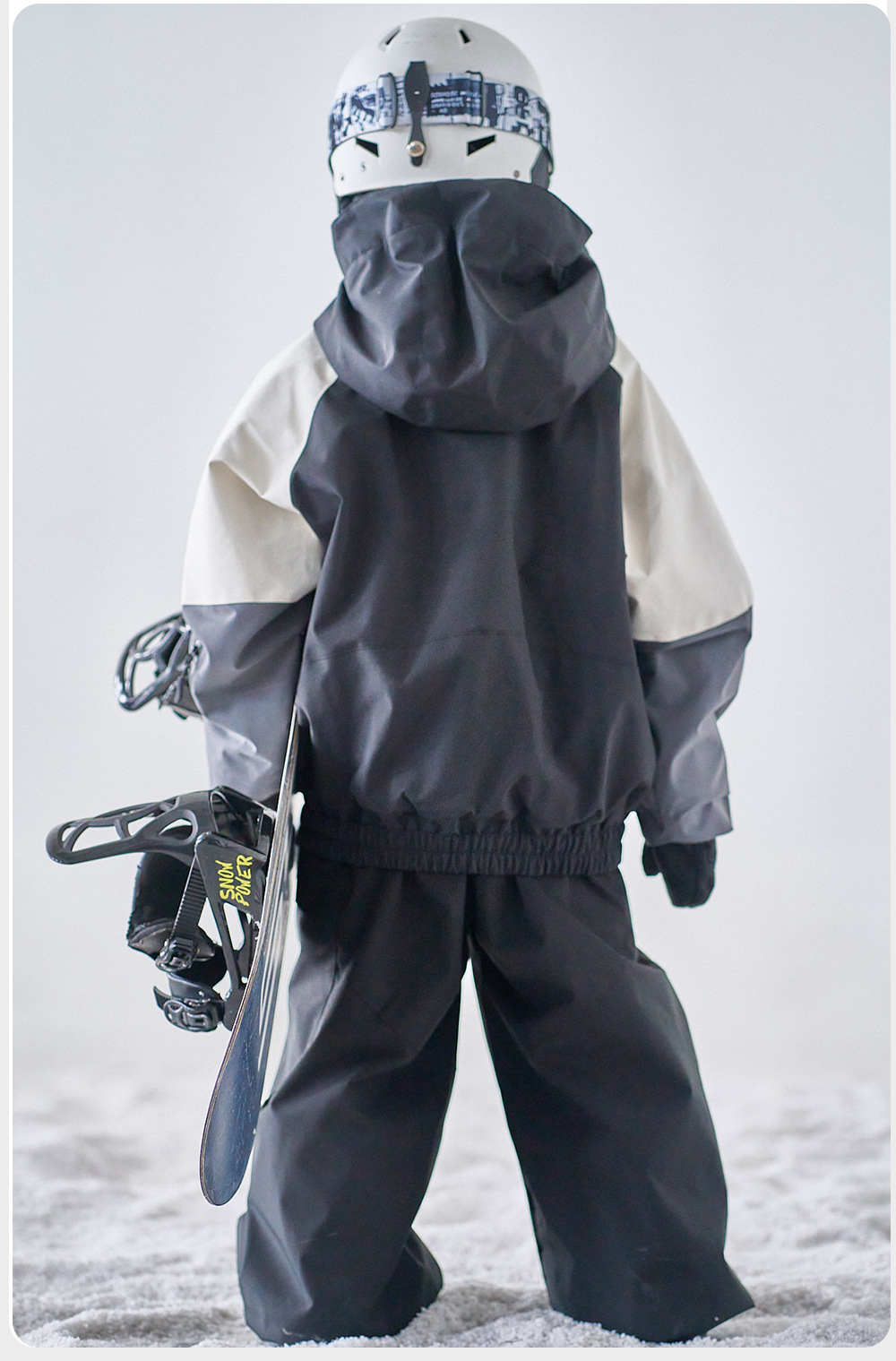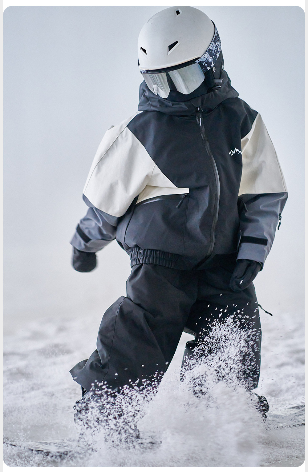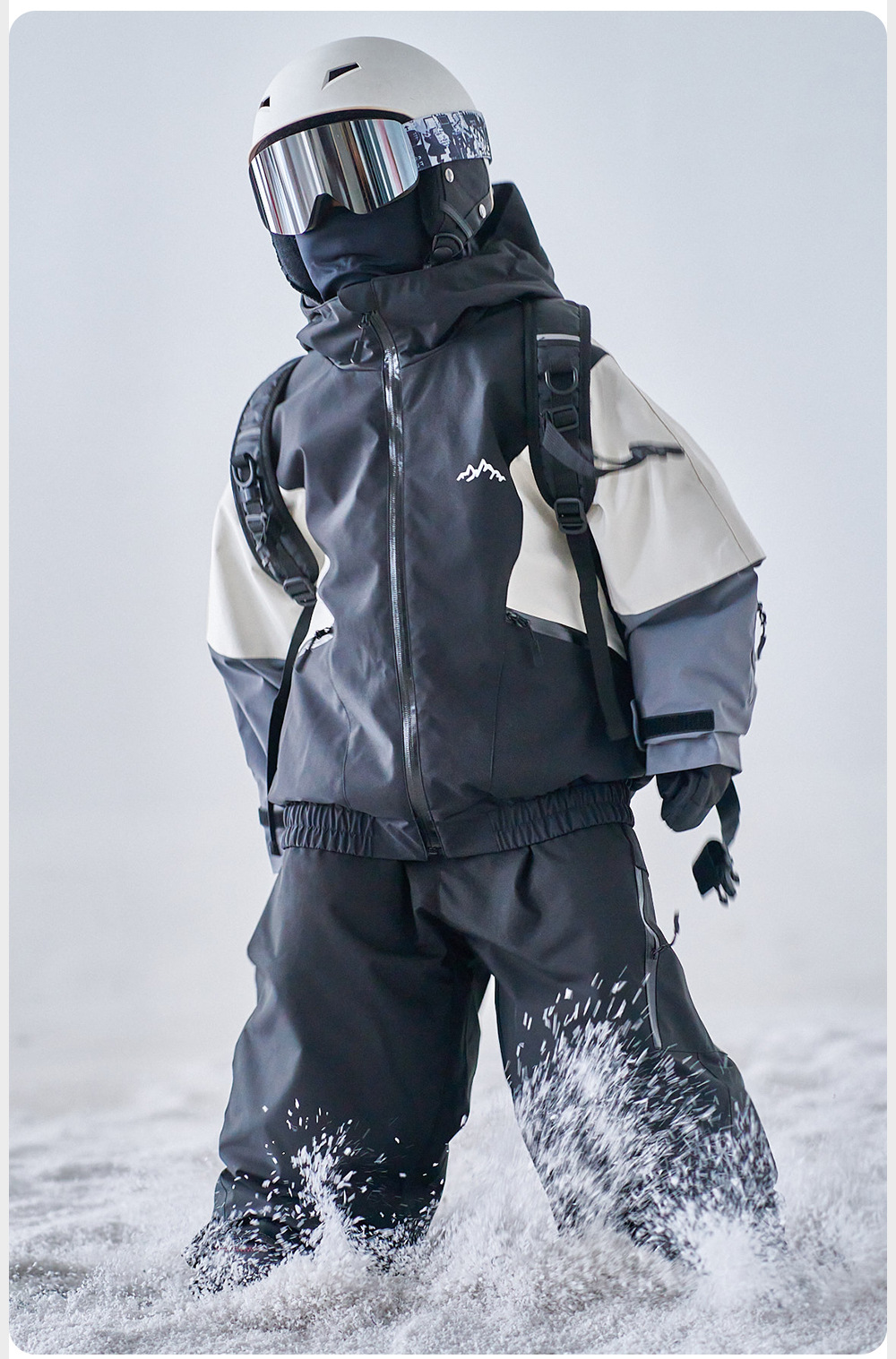 [Черно-белый серый лыжный костюм с молнией] Имго детский 3L ветрозащитный и водоотталкивающий лыжный костюм с хлопком и утолщенными лыжными штанами