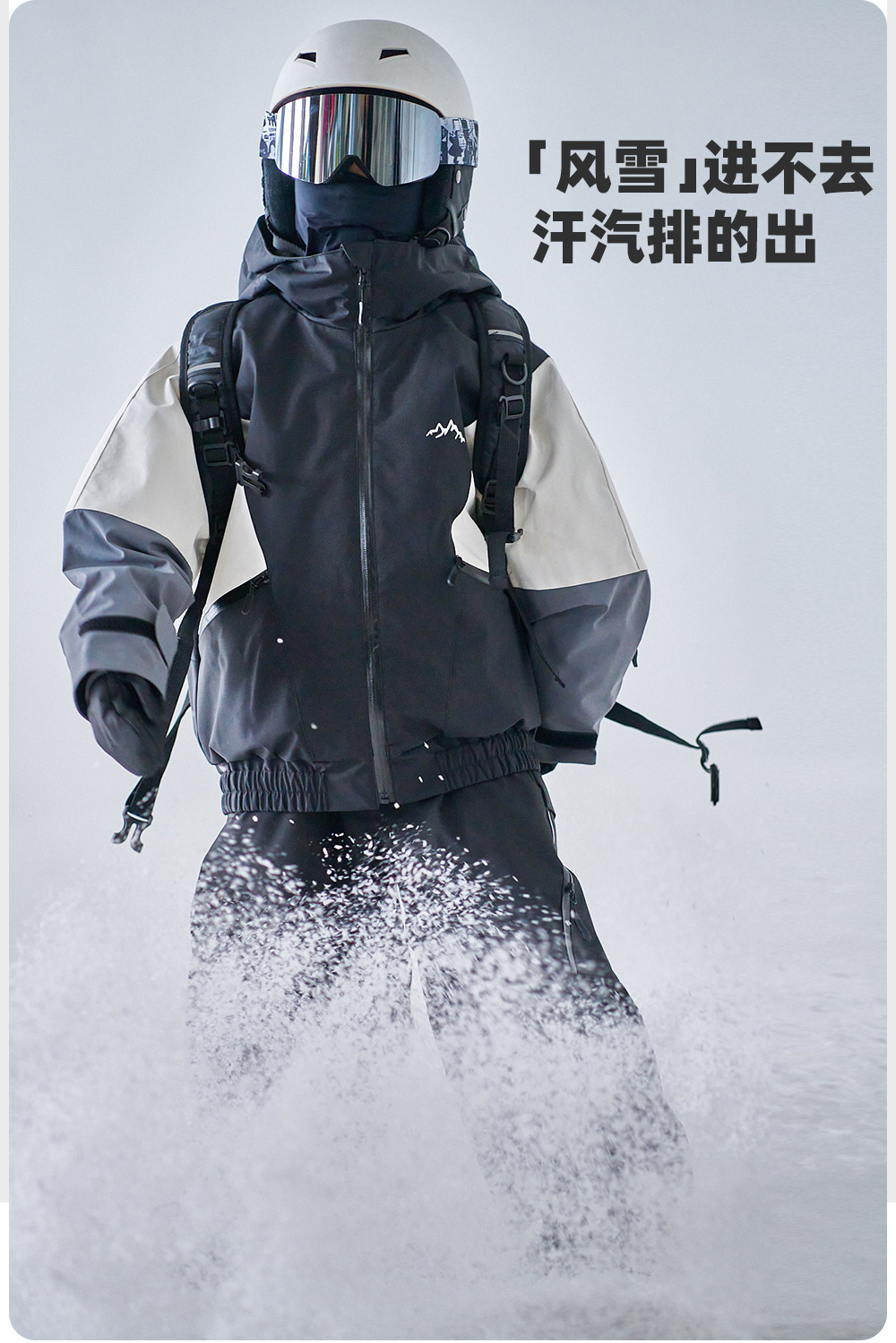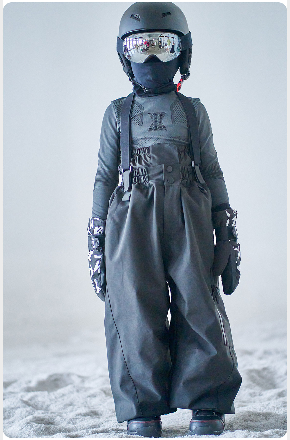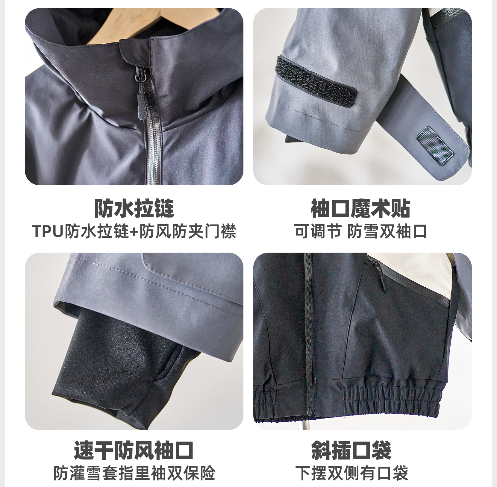 [Черно-белый серый лыжный костюм с молнией] Имго детский 3L ветрозащитный и водоотталкивающий лыжный костюм с хлопком и утолщенными лыжными штанами