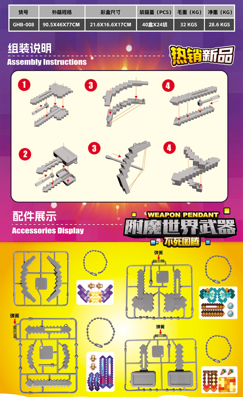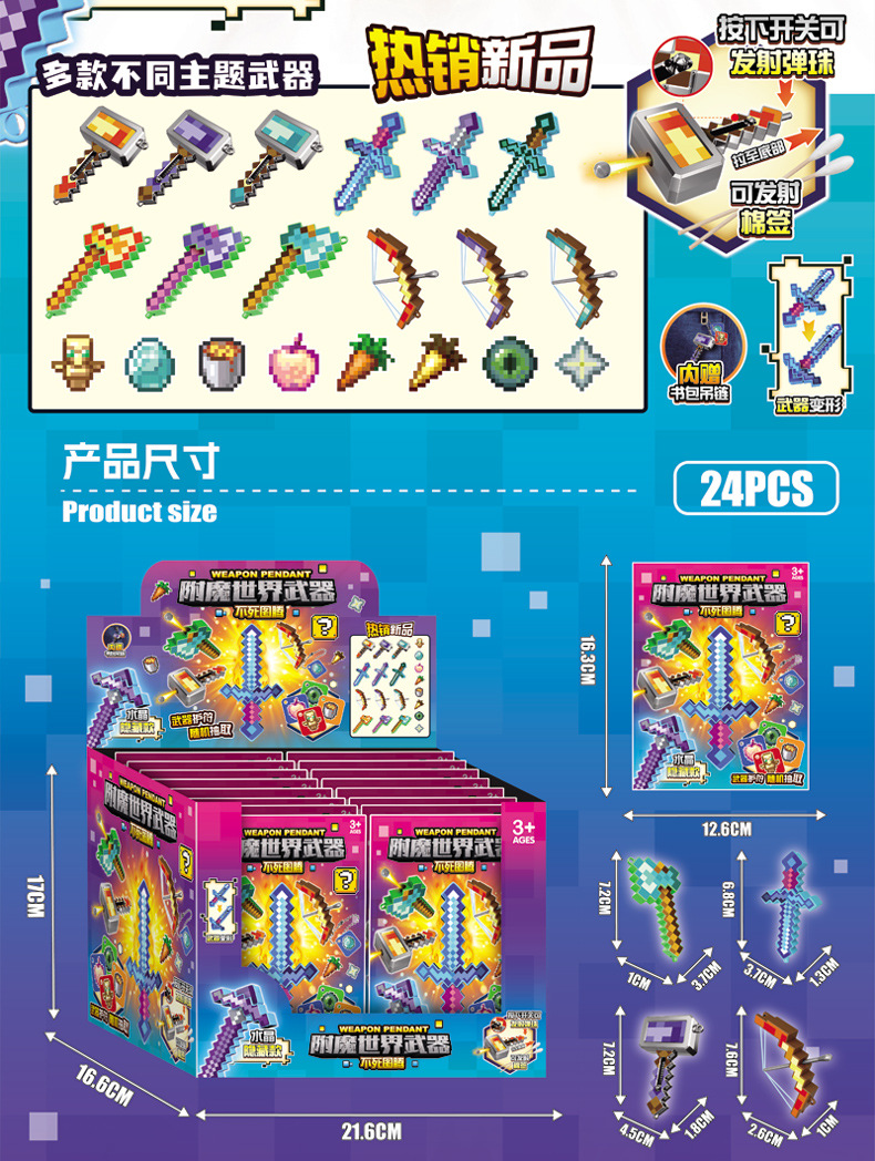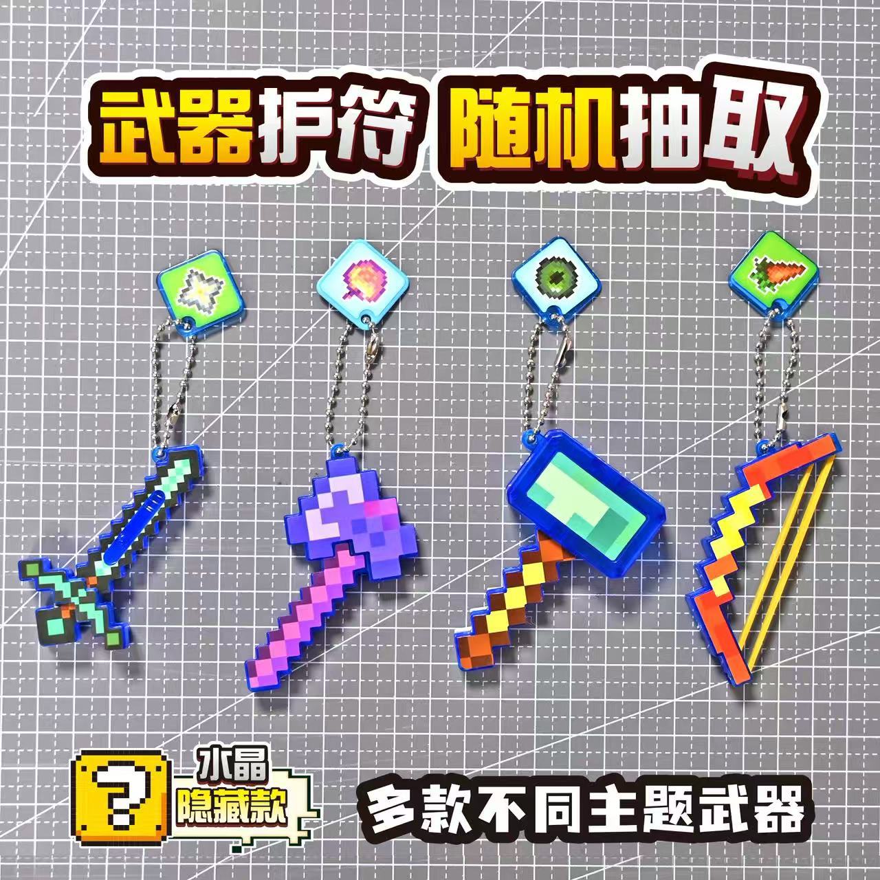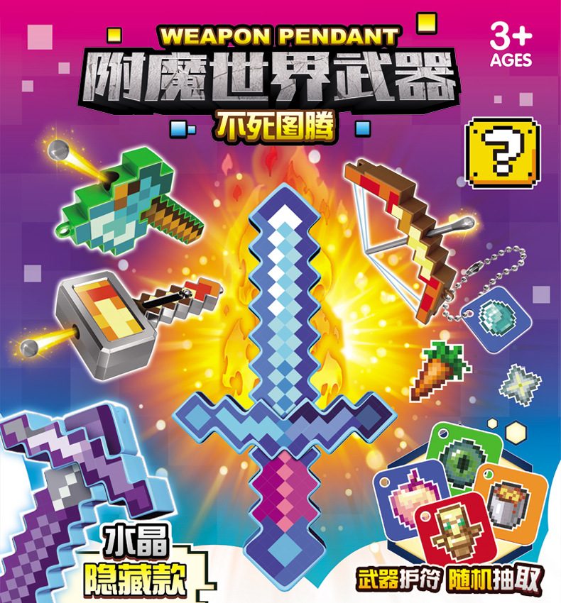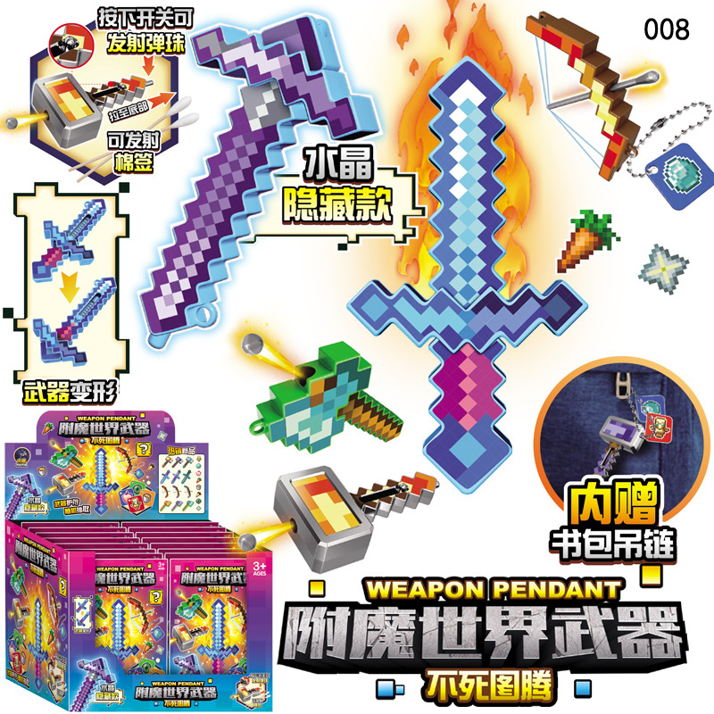 Оружие мирового господства Бессмертный тотем Слепой пакет Пиксельный стиль Собранная модель оружия Брелок Детская собранная игрушка