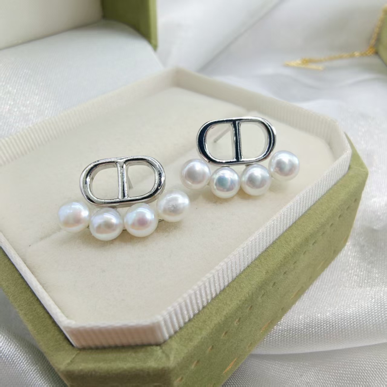 Серьги из серебра S925, элегантные, модные, простые, с подвеской в виде буквы Cd, натуральные жемчужины, изысканный маленький дизайн