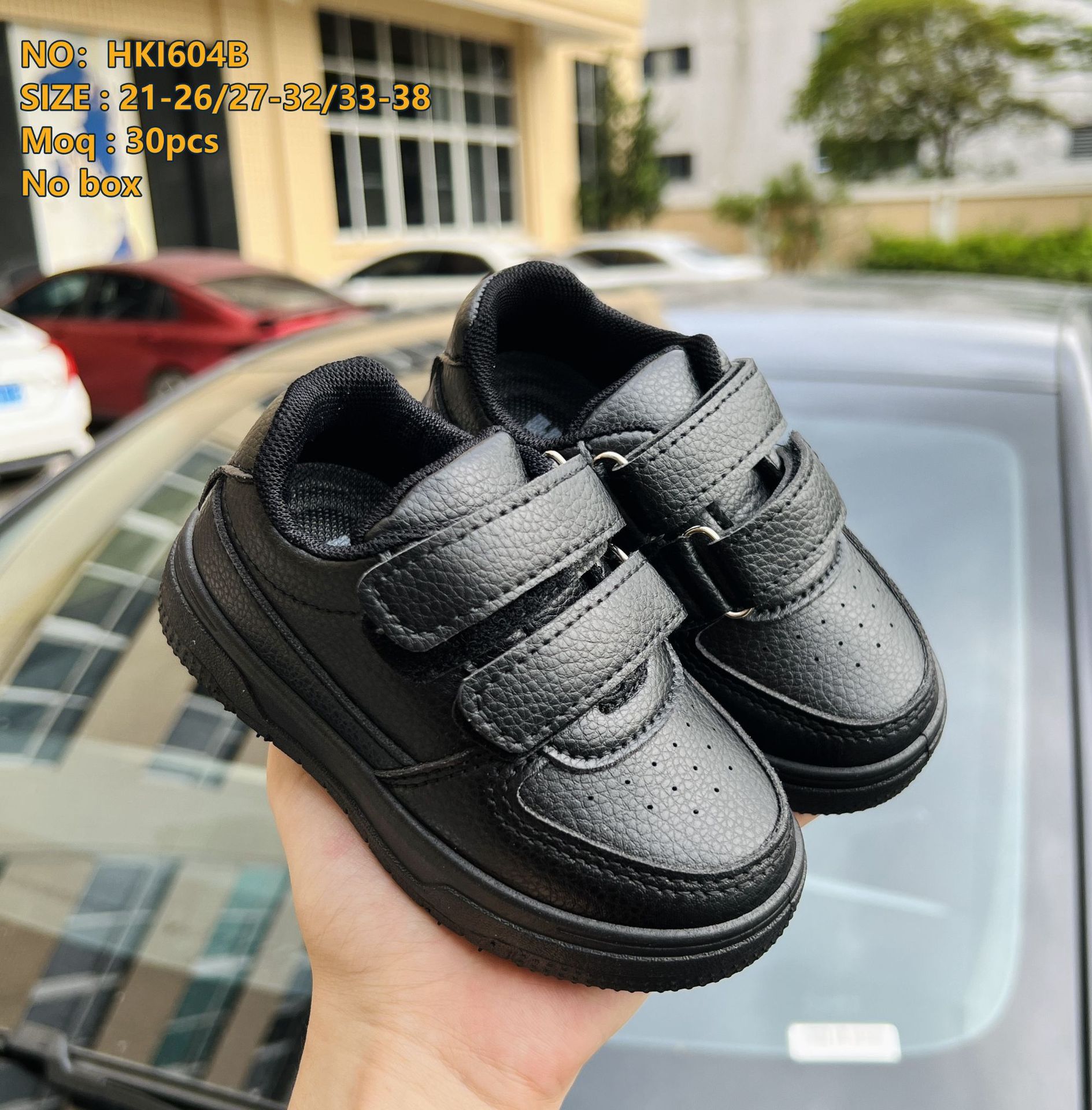 Детские кожаные туфли 2025 года, черные, с толстой подошвой, мягкие, дышащие, кроссовки для учеников, экспортные школьные туфли с липучкой