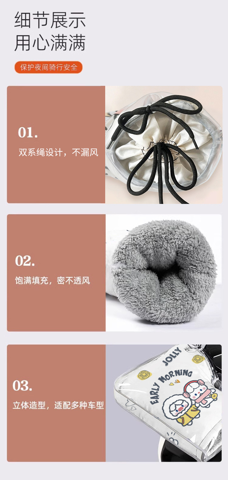 ![]() | All-in-one, non-detachable [pvc rainproof film + upgraded double windproof handlebar covers] - embrace the comfort | Double tether windproof, thickened and more heattech | ¥15.0 / ≈ 181 ₽ | 908 | 6145659038907 | |