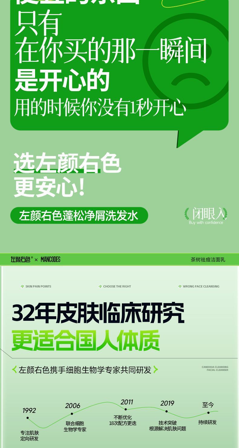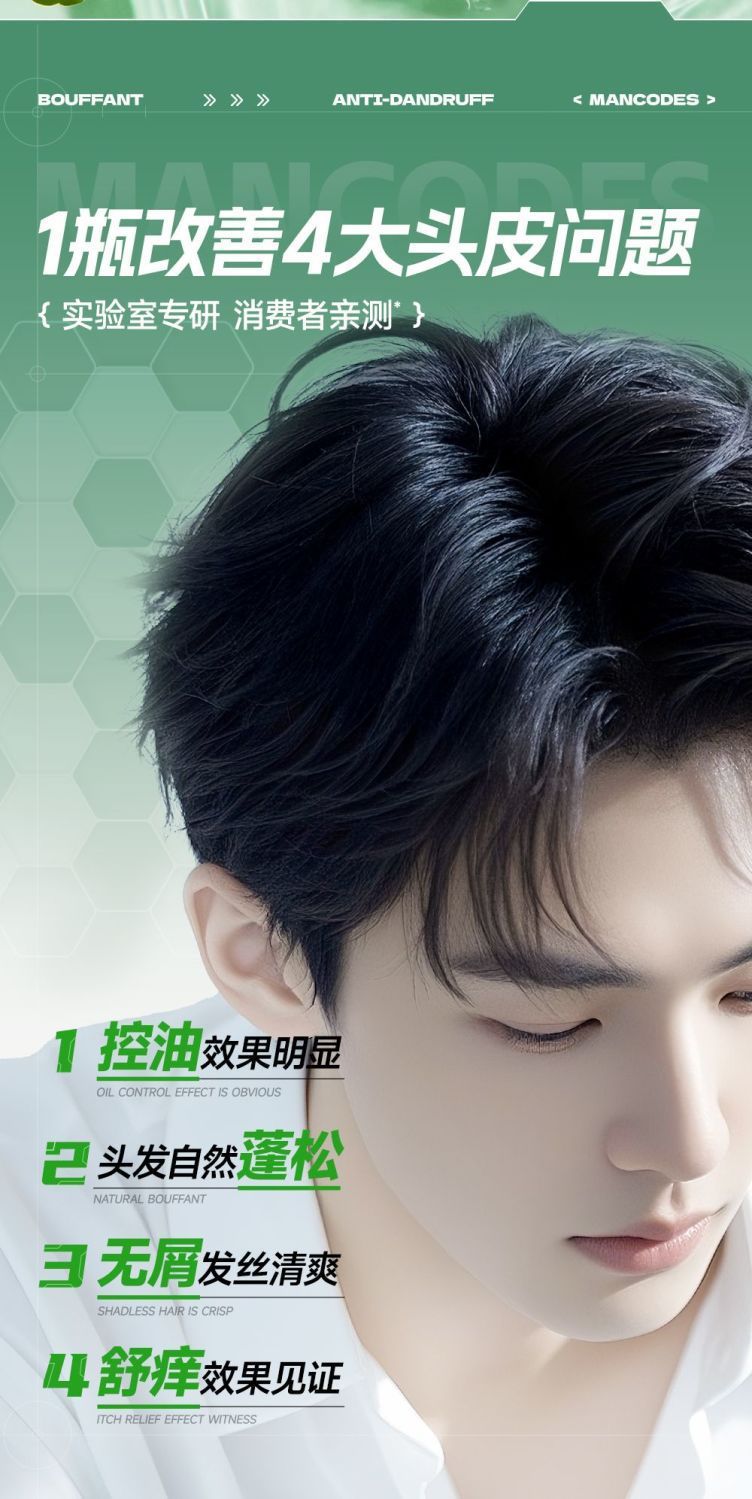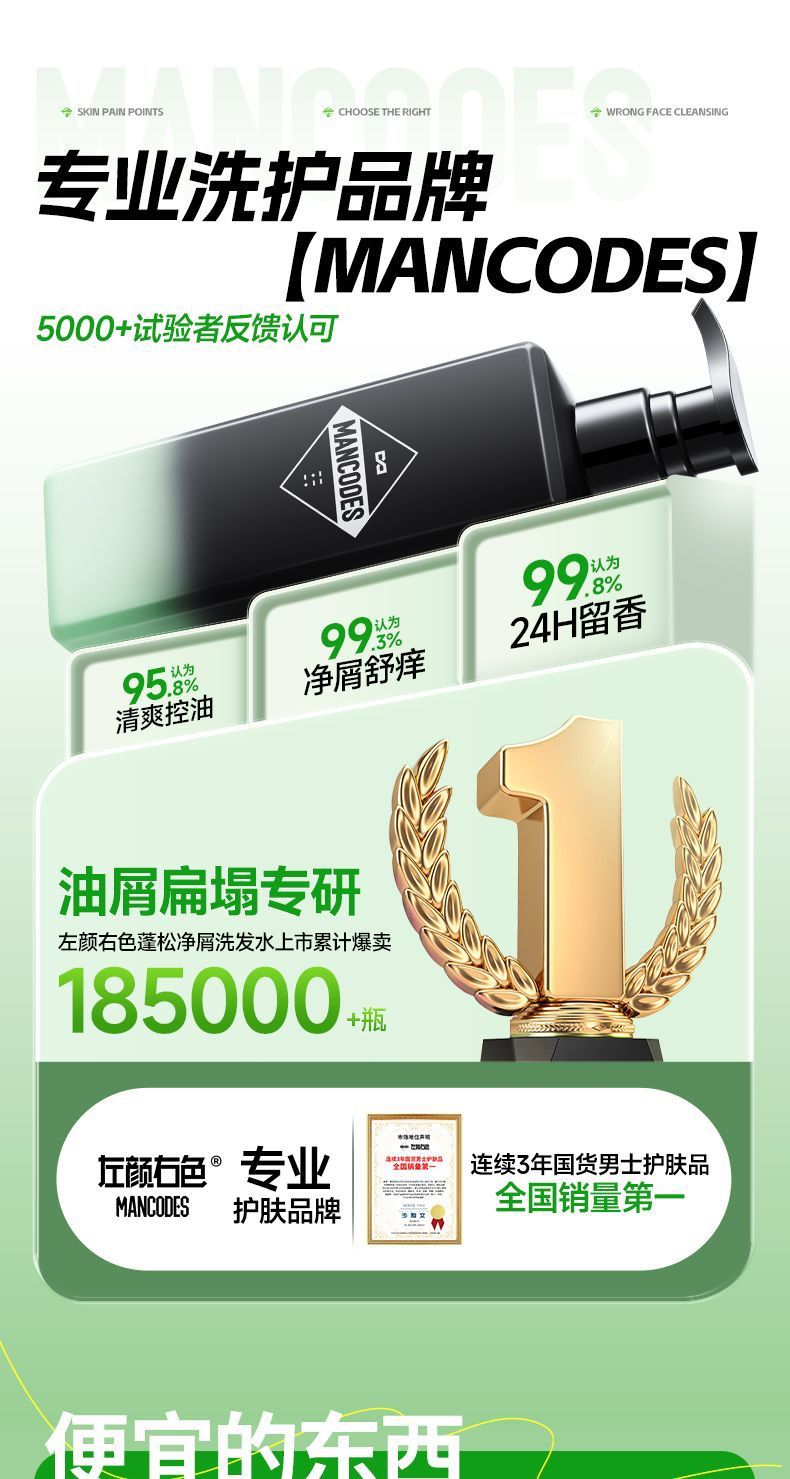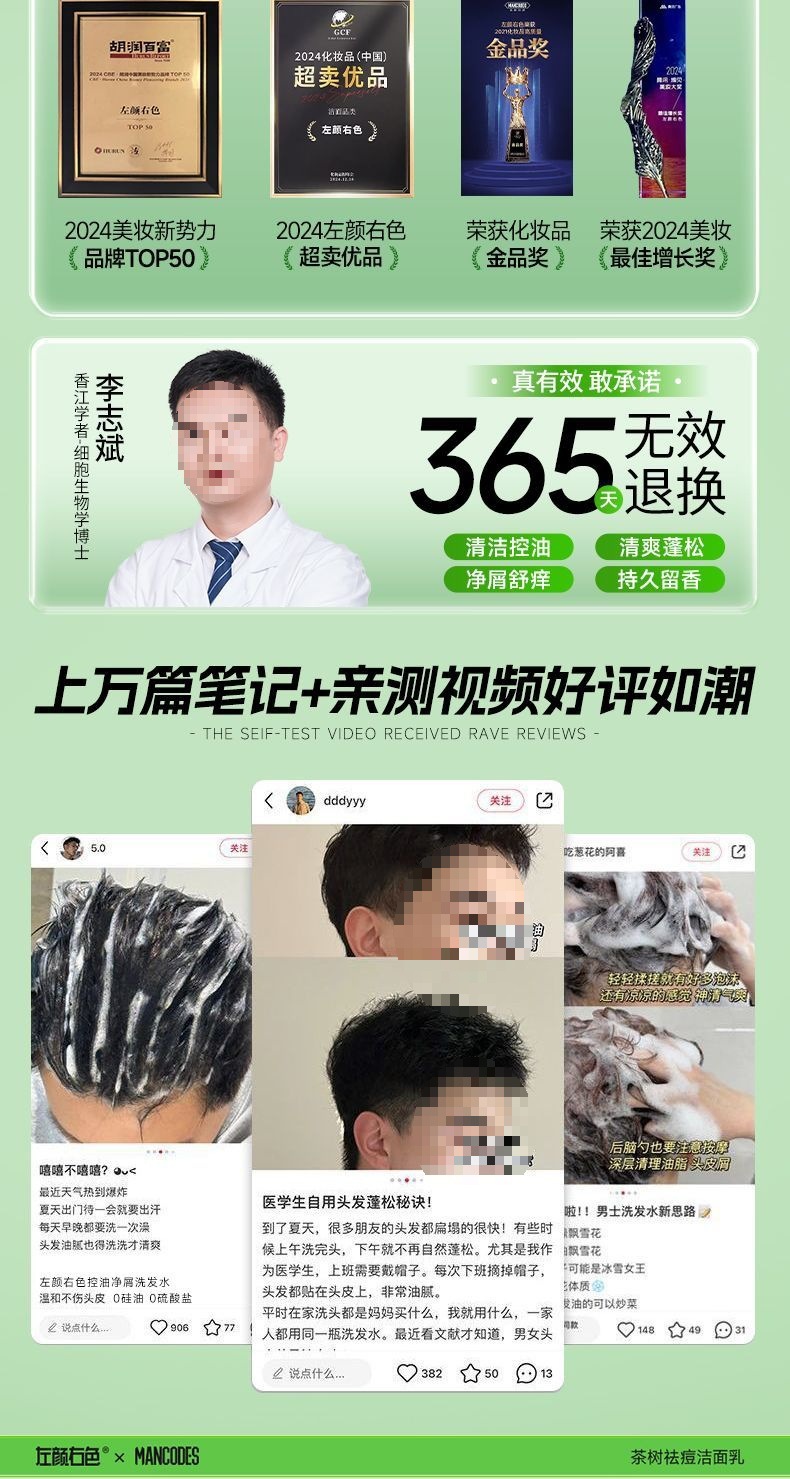 Шампунь для мужчин Left Yan Right Color с аминокислотами, против перхоти, против зуда, контроль масла, объемный, долговечный аромат одеколона