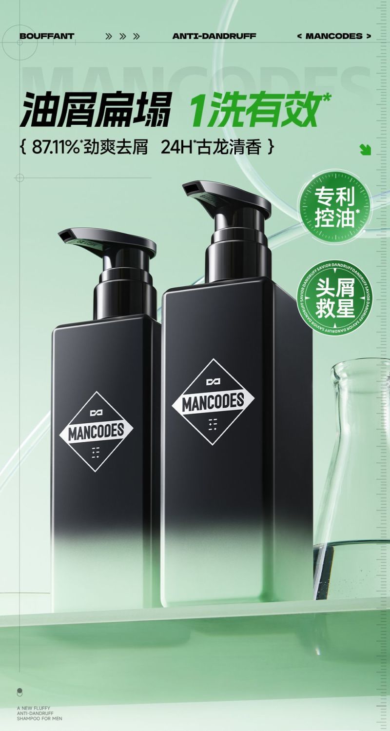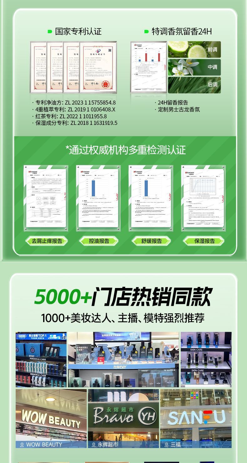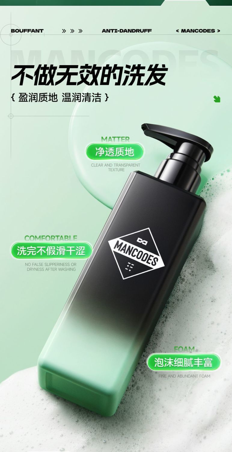 Шампунь для мужчин Left Yan Right Color с аминокислотами, против перхоти, против зуда, контроль масла, объемный, долговечный аромат одеколона