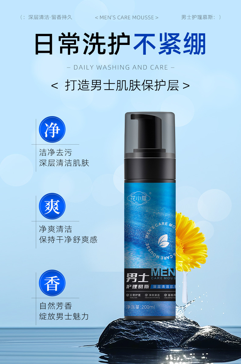 Мусс для мужчин Flower Cardamom, специальная очищающая жидкость, 200 мл
