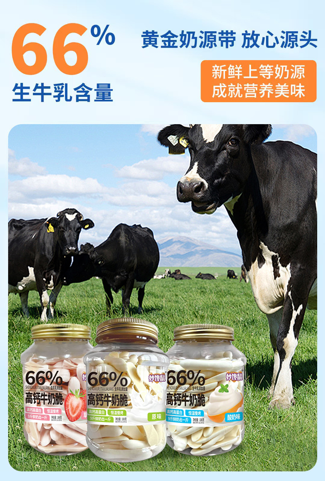 Хрустящие молочные чипсы Miaochan Mouse с высоким содержанием кальция 108г/банка
