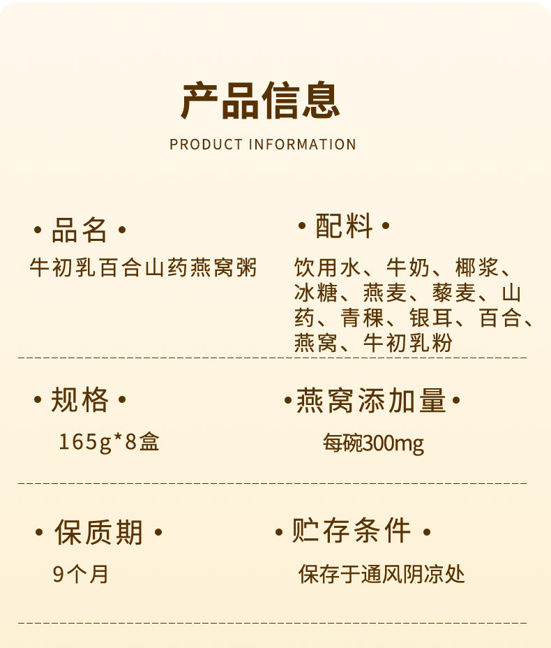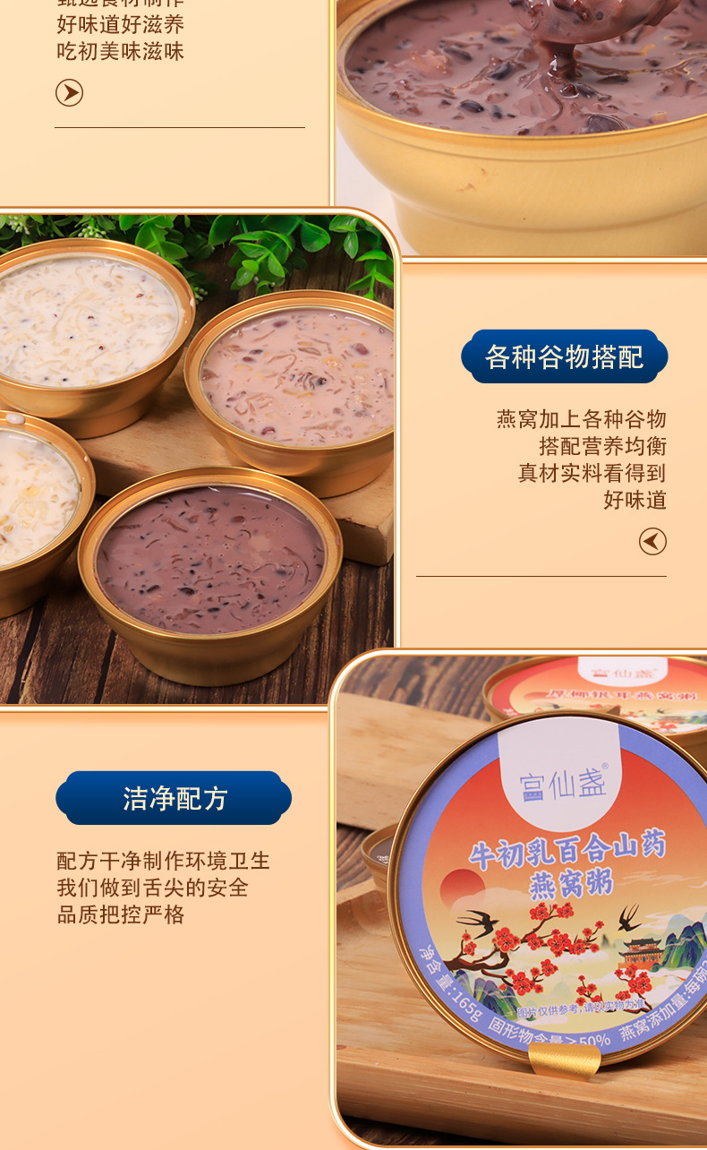 📦 | (gift box) colostrum lily yam bird's nest porridge 165g*8 boxes | ¥52.5 / ≈ 633 ₽ | 74 | 6112446531249 | |