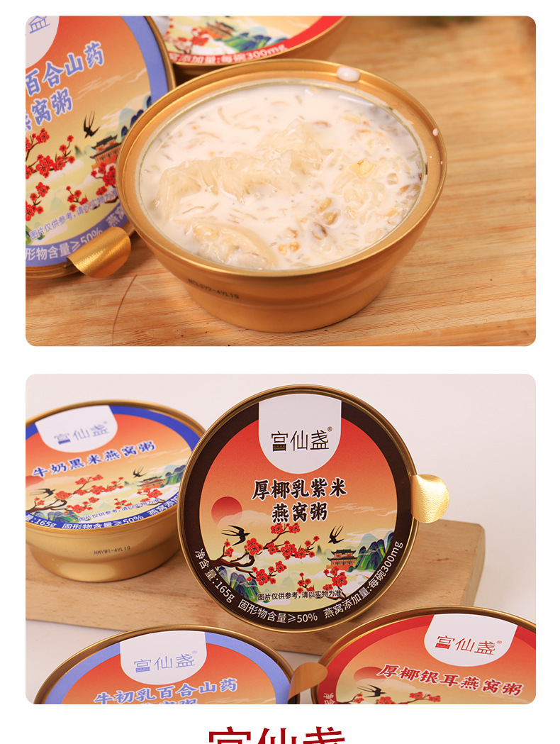 Gongxianzhan свежая каша из птичьих гнезд с колострумом, лилией, ямсом, кокосовым вкусом, густое кокосовое молоко, фиолетовый рис, черный рис