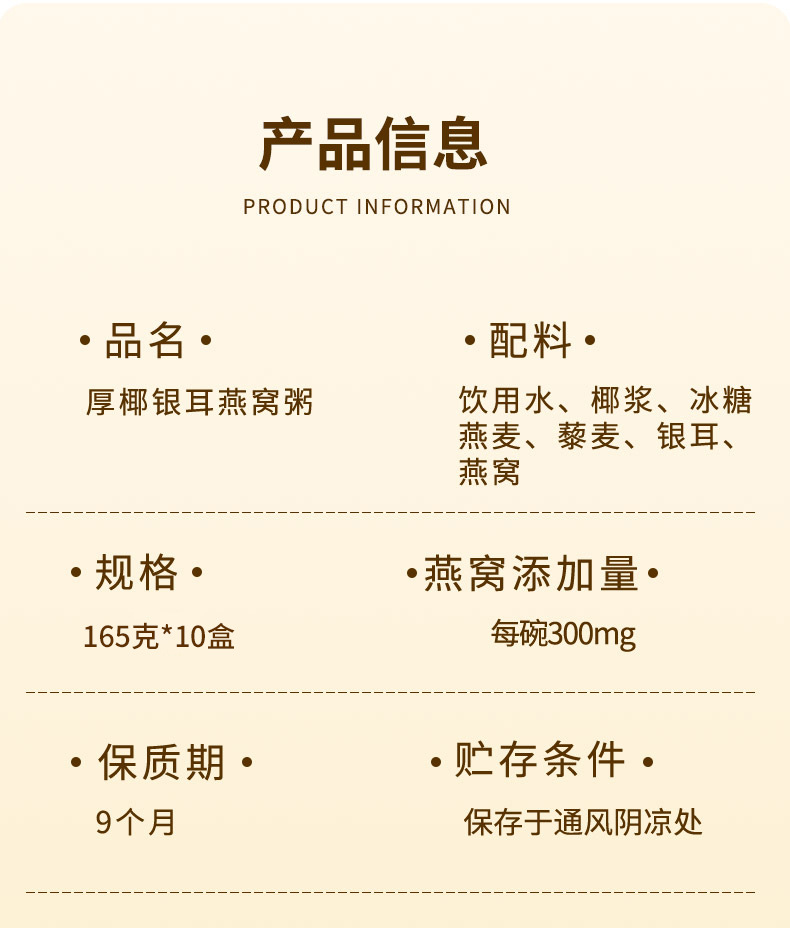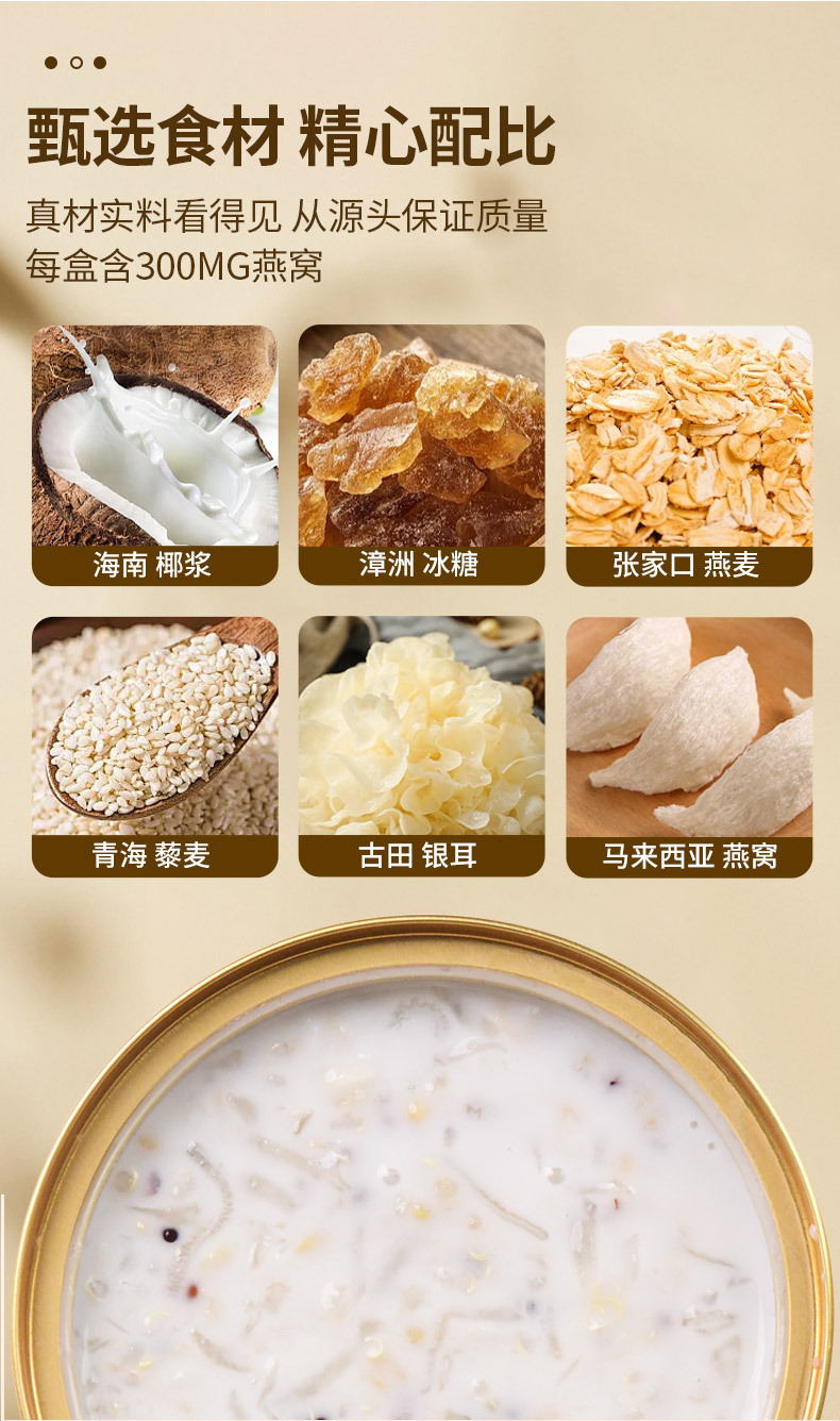 📦 | Thick coconut white fungus bird's nest porridge 165g*10 boxes | ¥54.5 / ≈ 657 ₽ | 83 | 6112446531246 | |