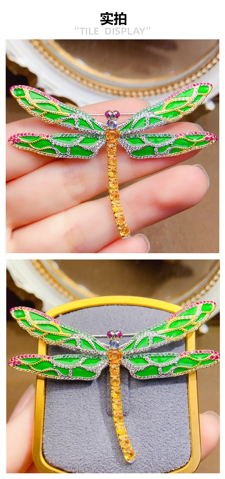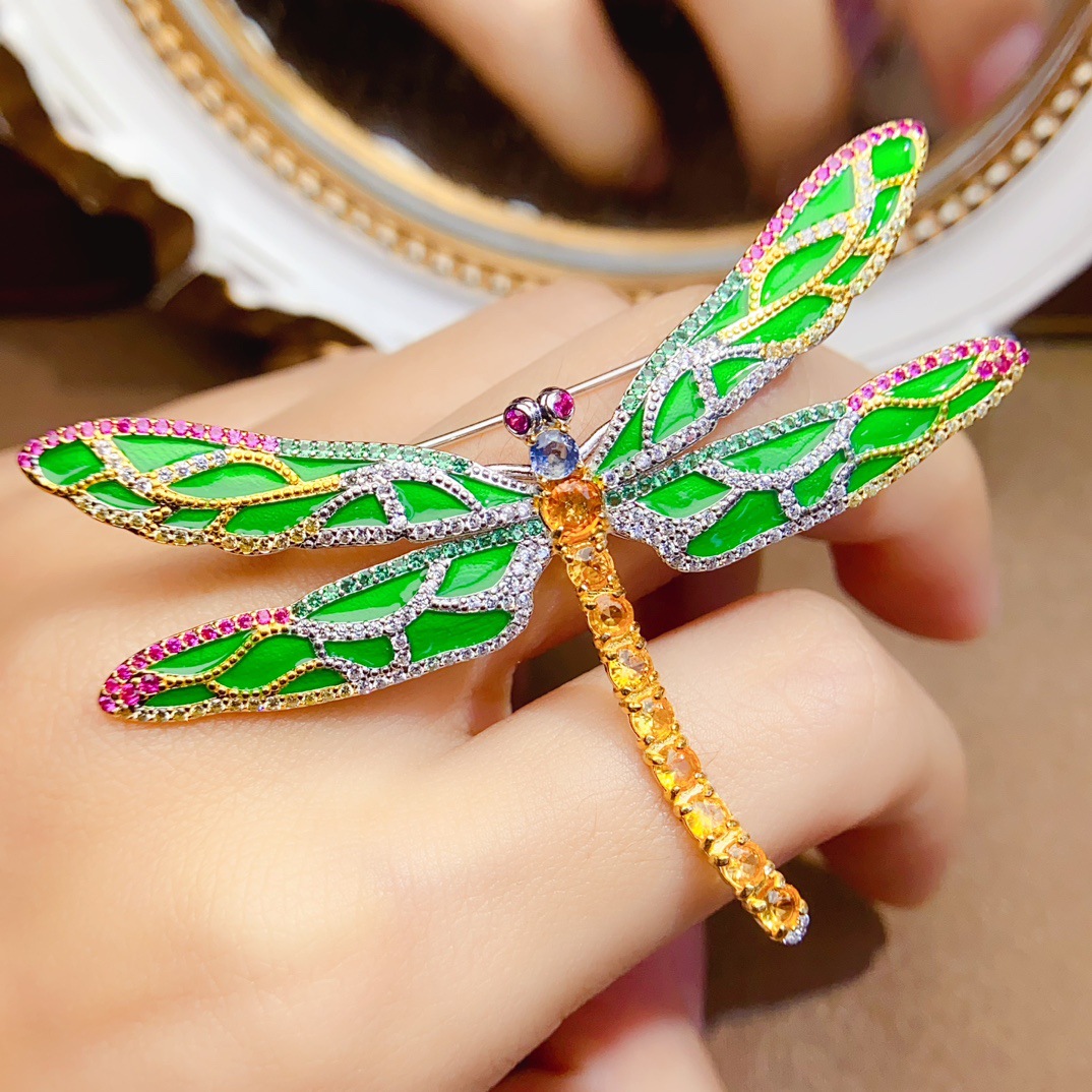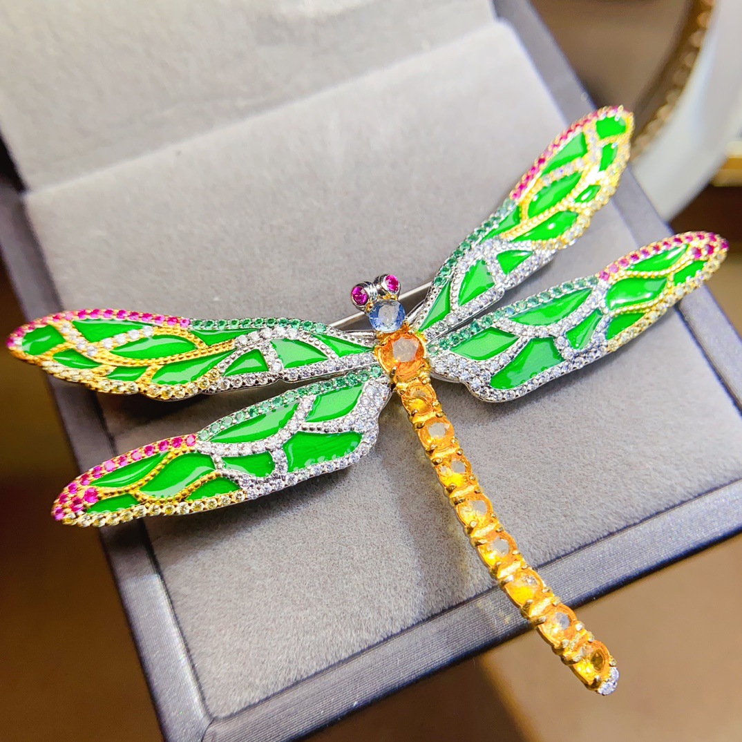 Название продукта Natural emerald brooch s925 silver inlaid with main stone 2*2