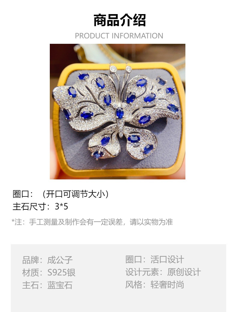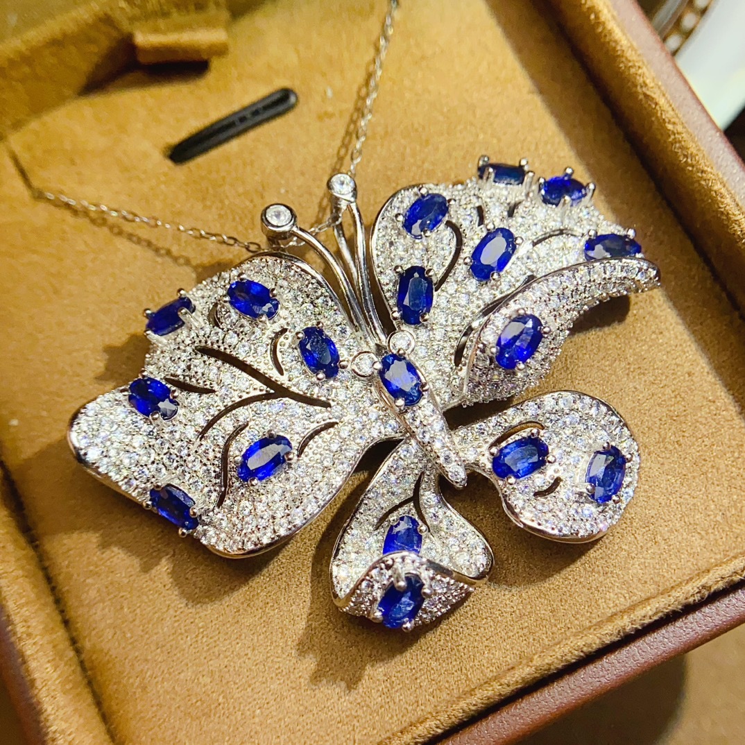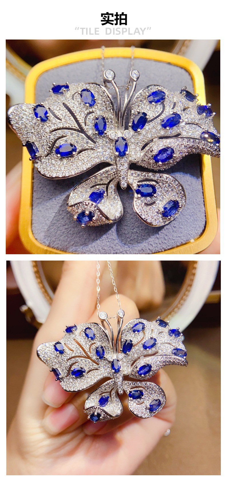Оптовая продажа популярной натуральной сапфировой броши S925 из серебра с инкрустированным основным камнем 3*5, популярная в Европе и Америке, дропшиппинг