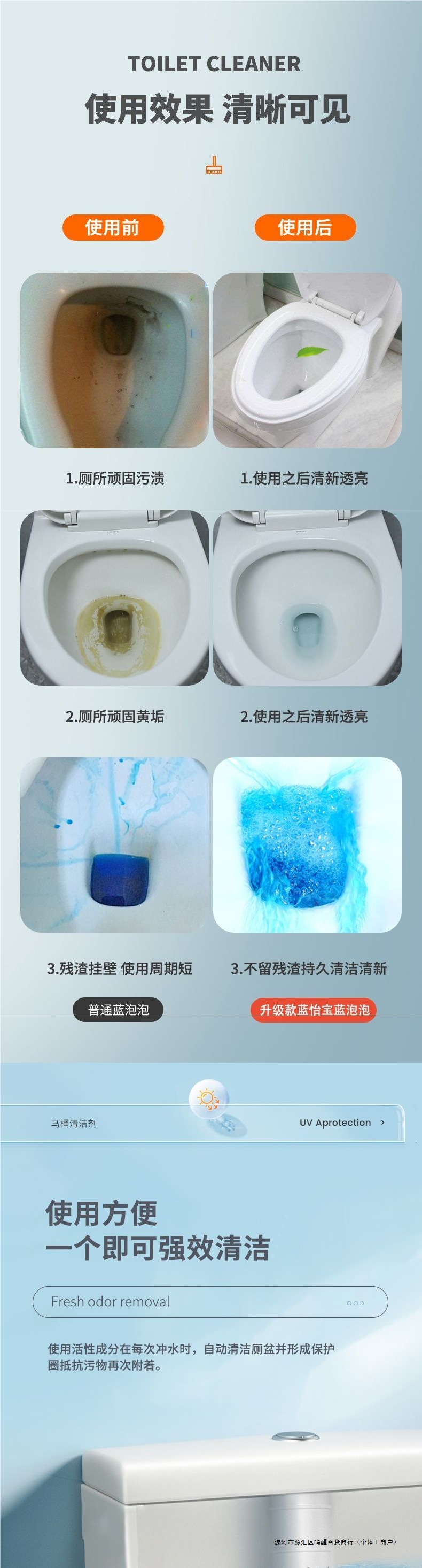Синий туалетный очиститель Yibao с ароматом, блок для туалета, пена для чистки, дезодорант, долговечный, для удаления накипи