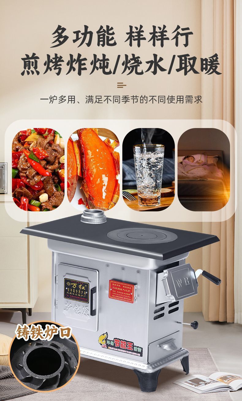 Новая отопительная печь, сельская бездымная паровая печь, домашняя чугунная печь, универсальная печь для дров и угля