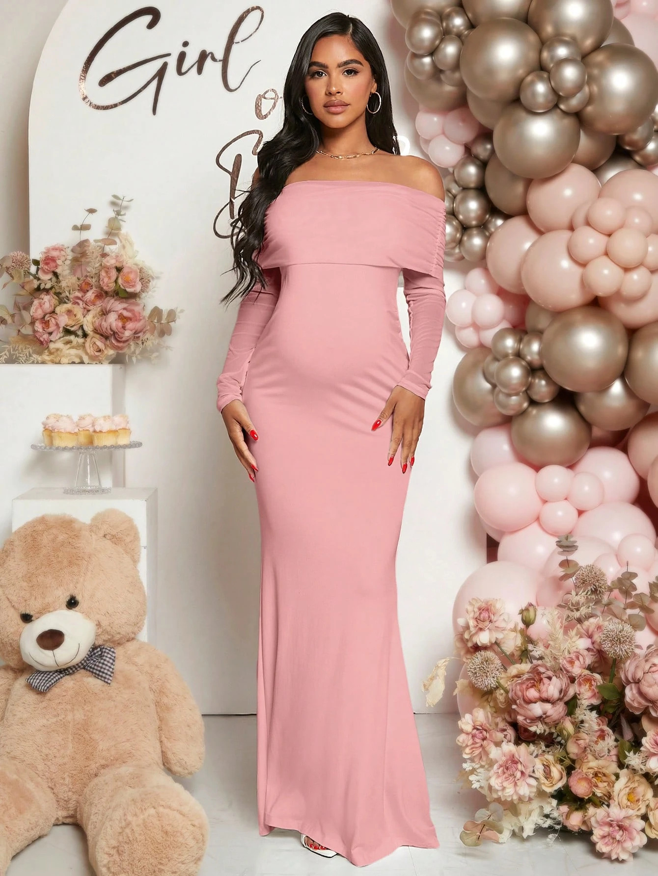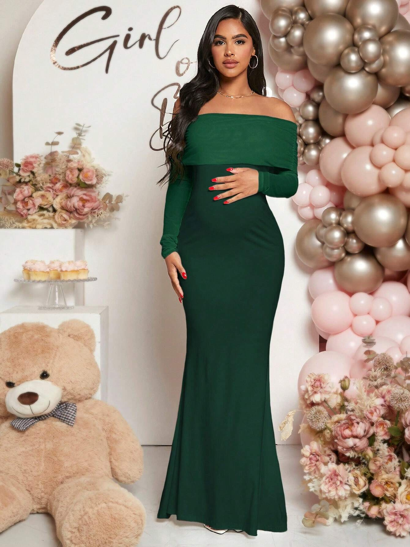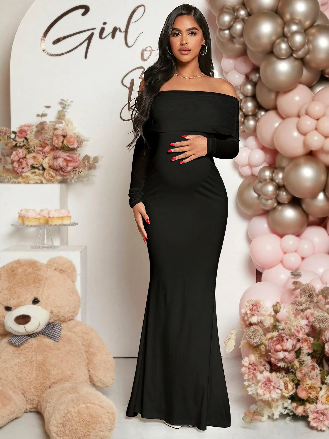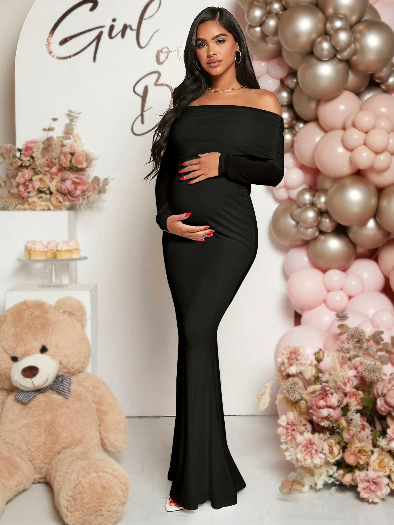 Платье для беременных с открытыми плечами, хвостовик, длинный рукав, европейский и американский стиль