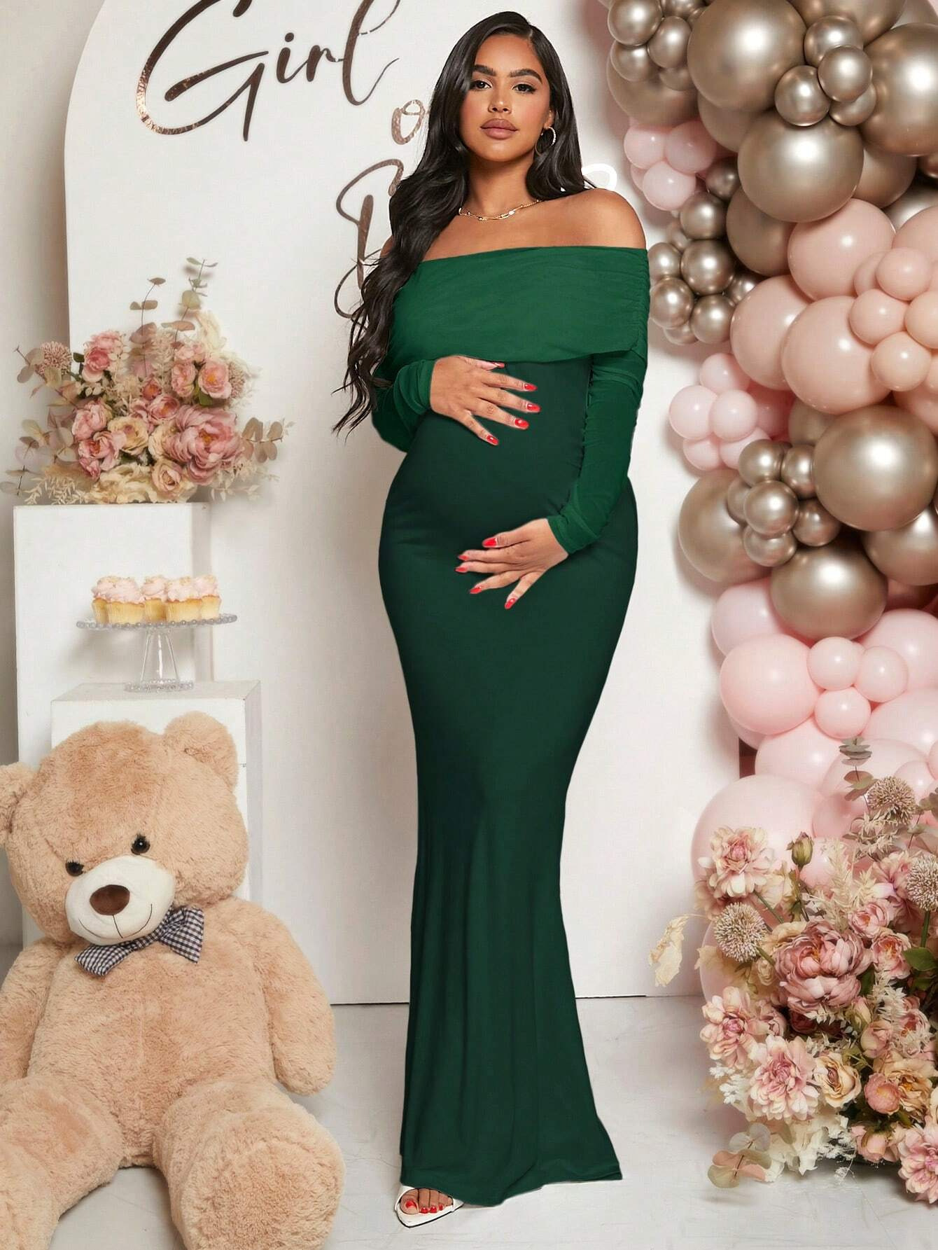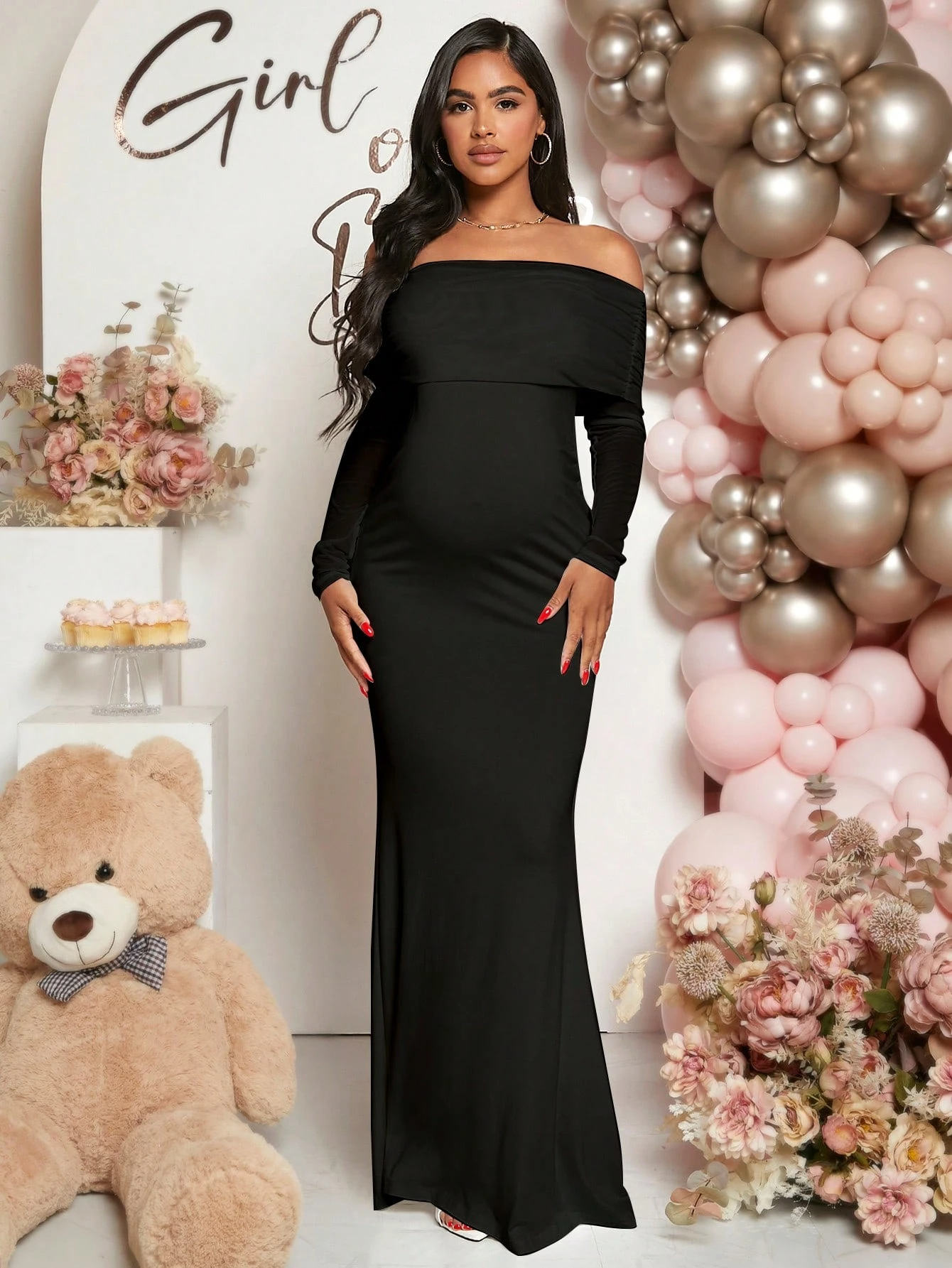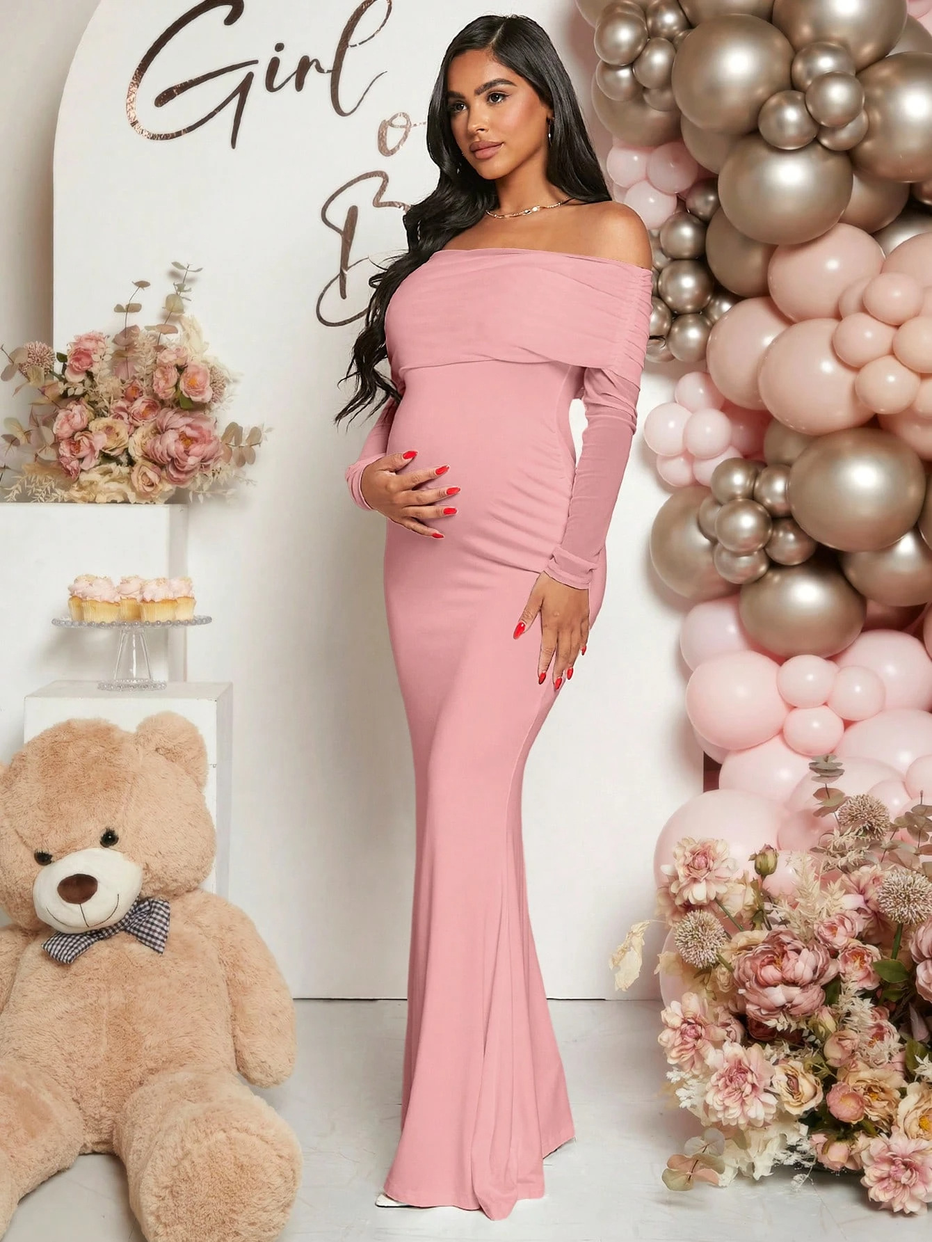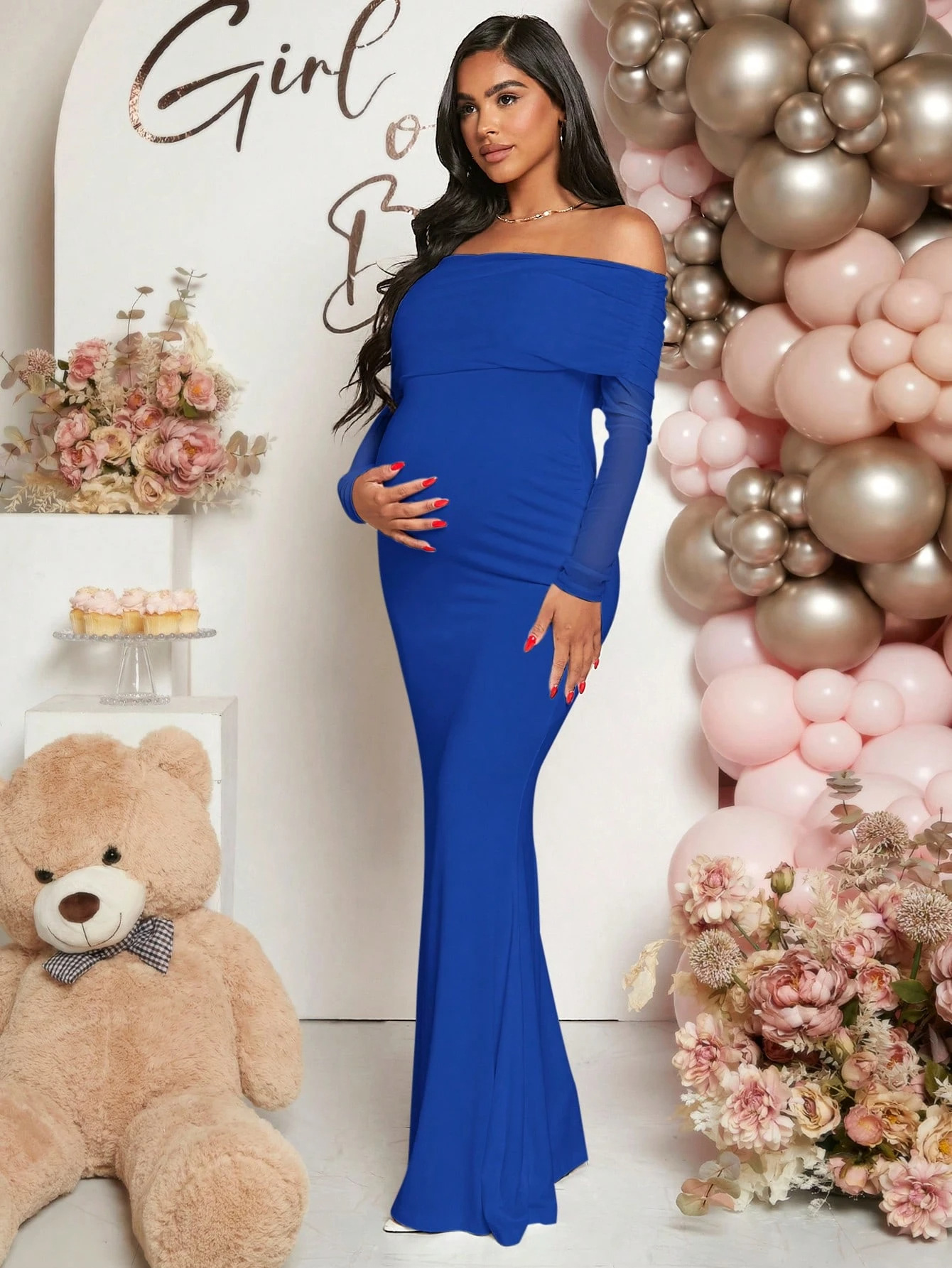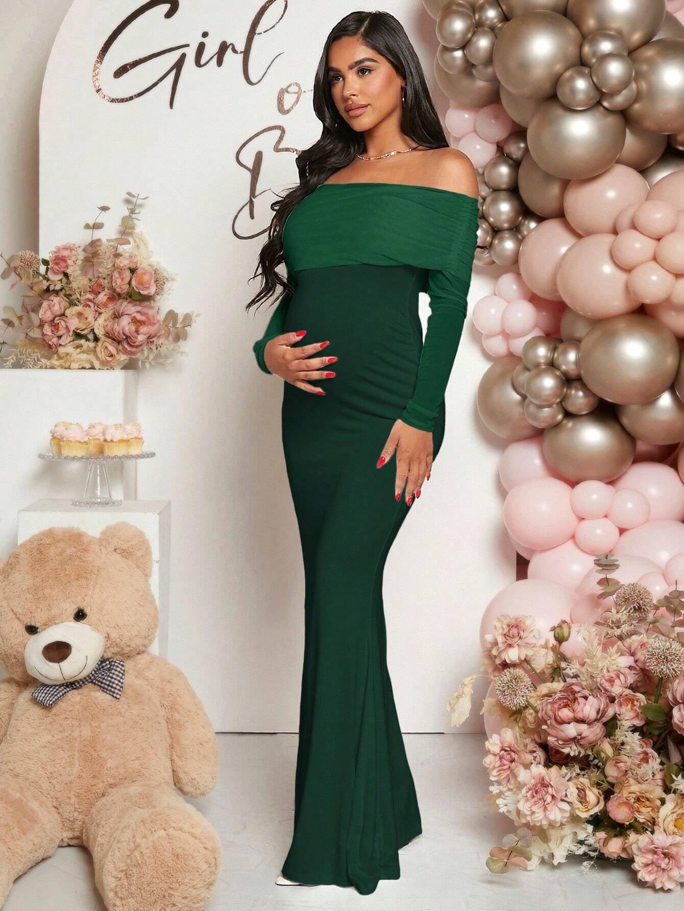 Платье для беременных с открытыми плечами, хвостовик, длинный рукав, европейский и американский стиль