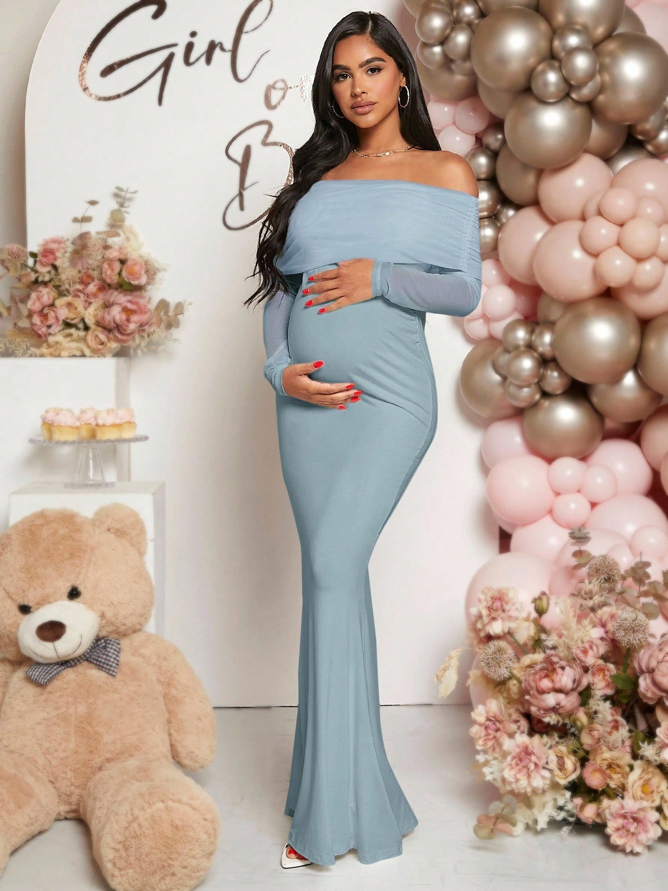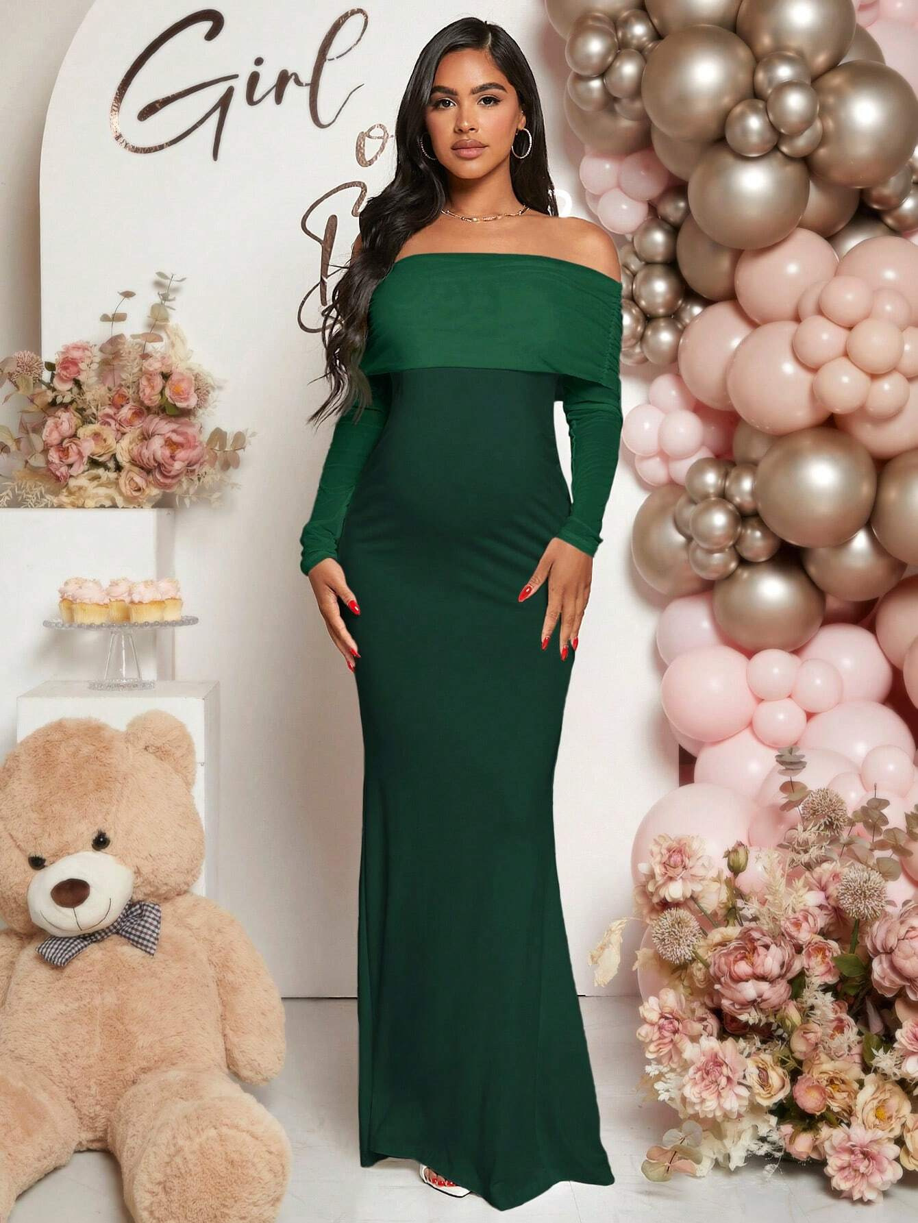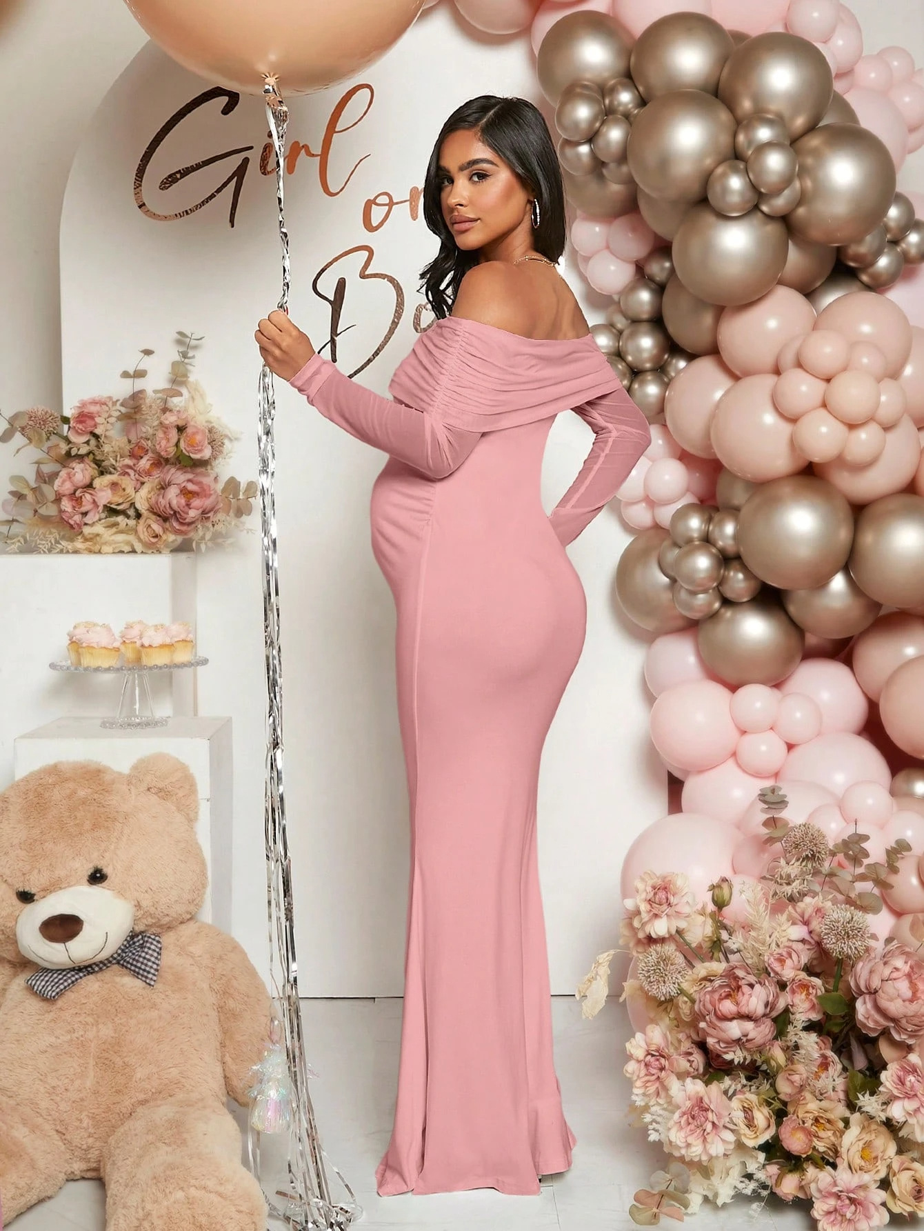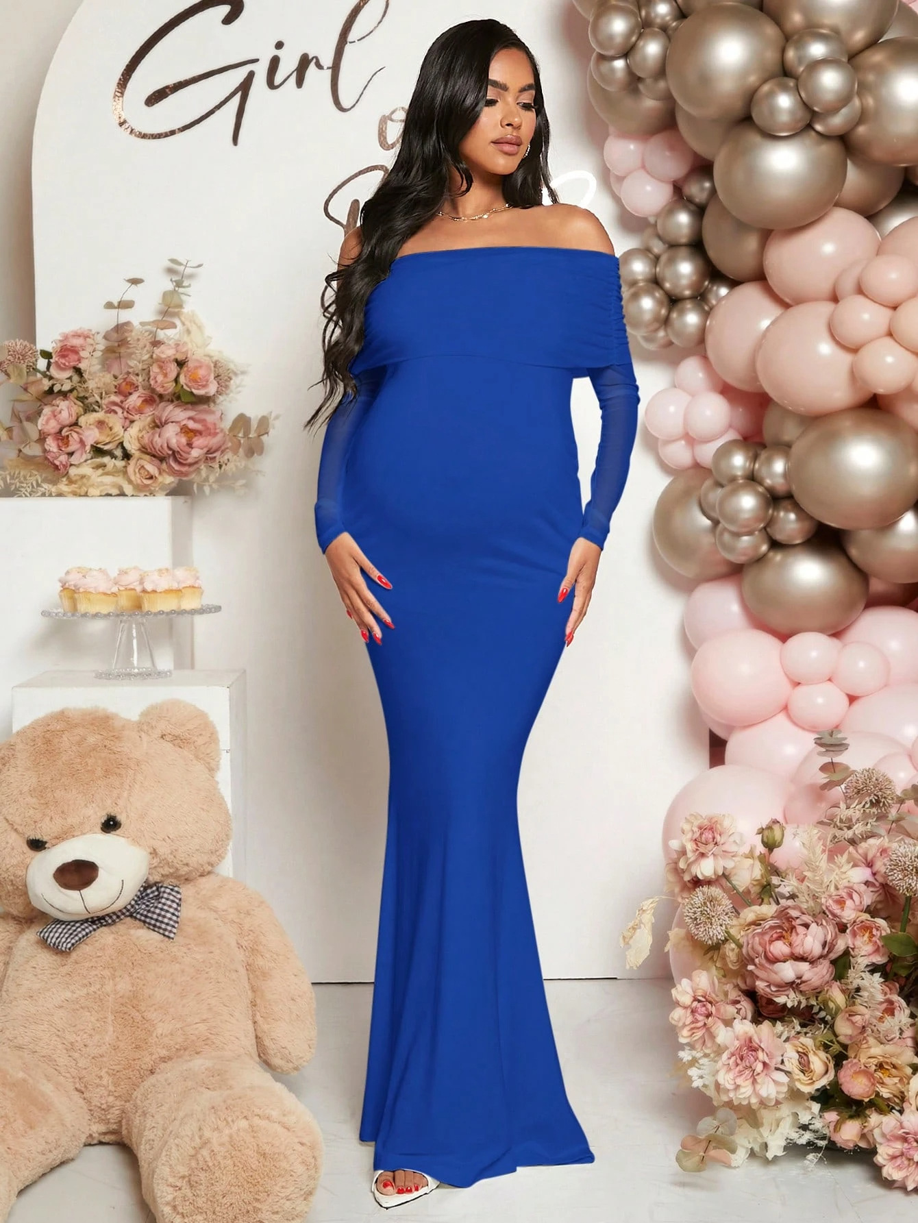 Платье для беременных с открытыми плечами, хвостовик, длинный рукав, европейский и американский стиль