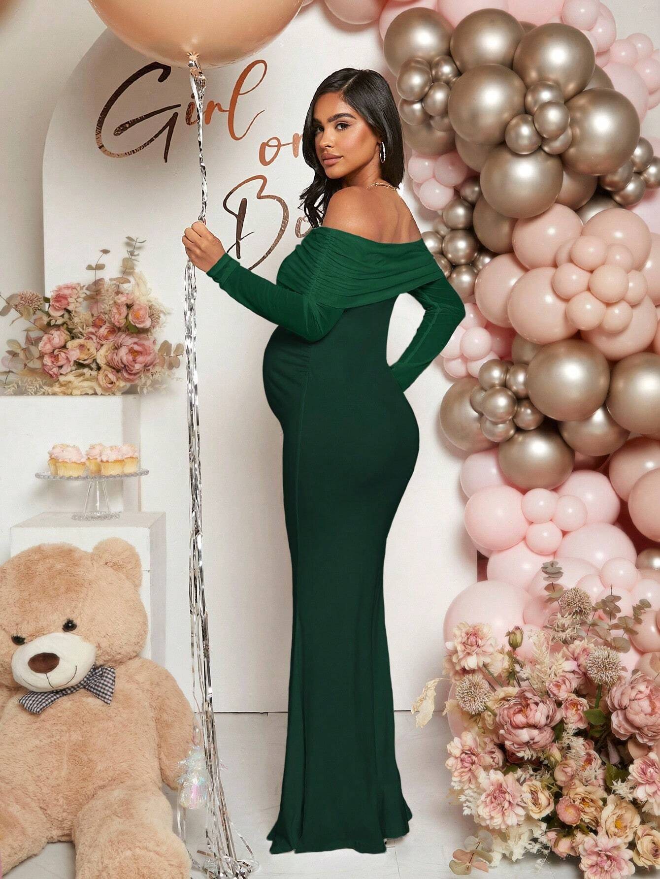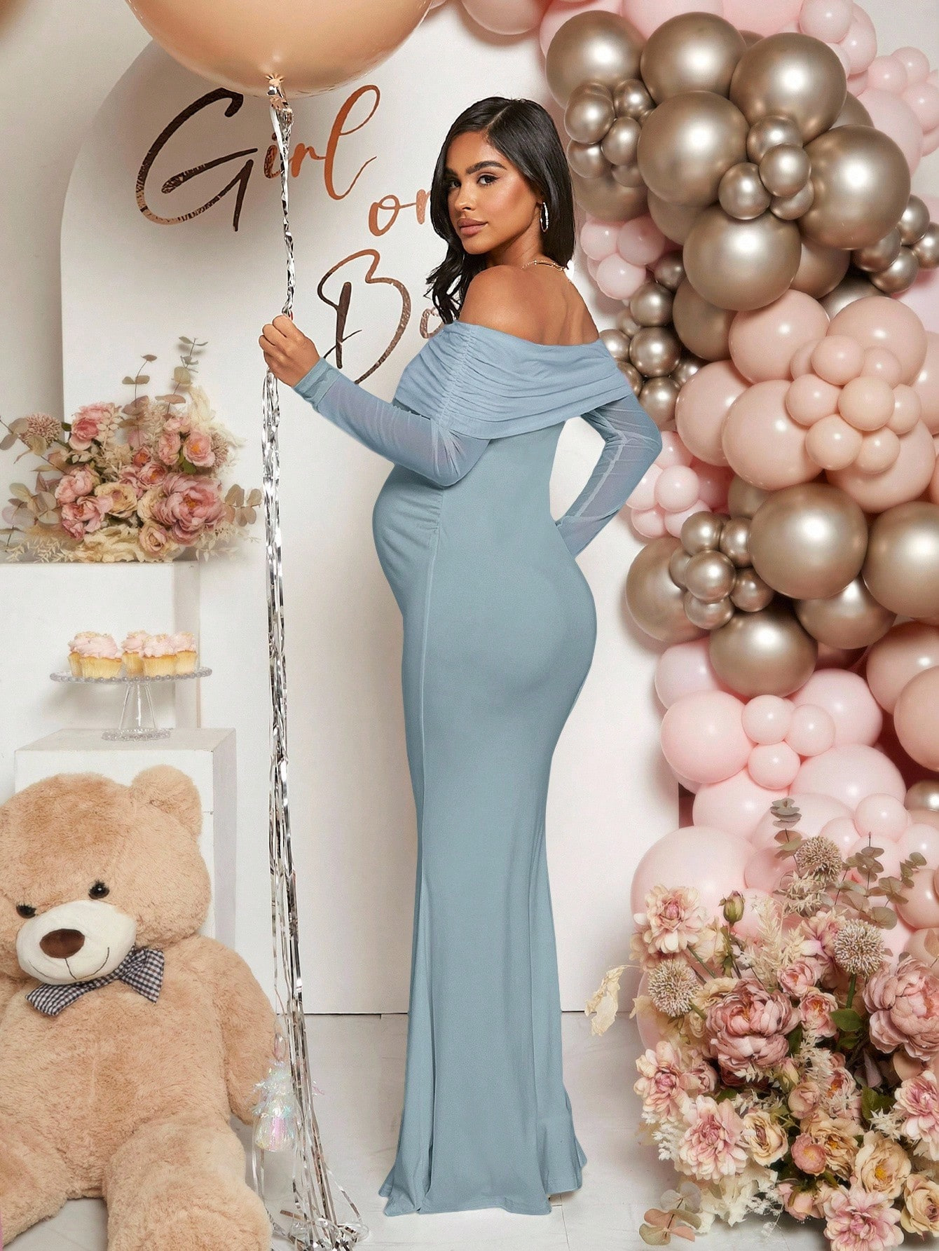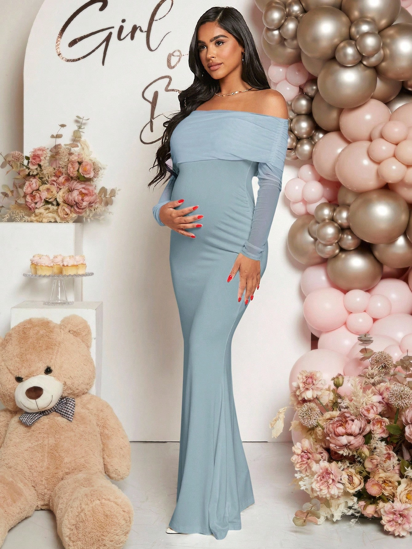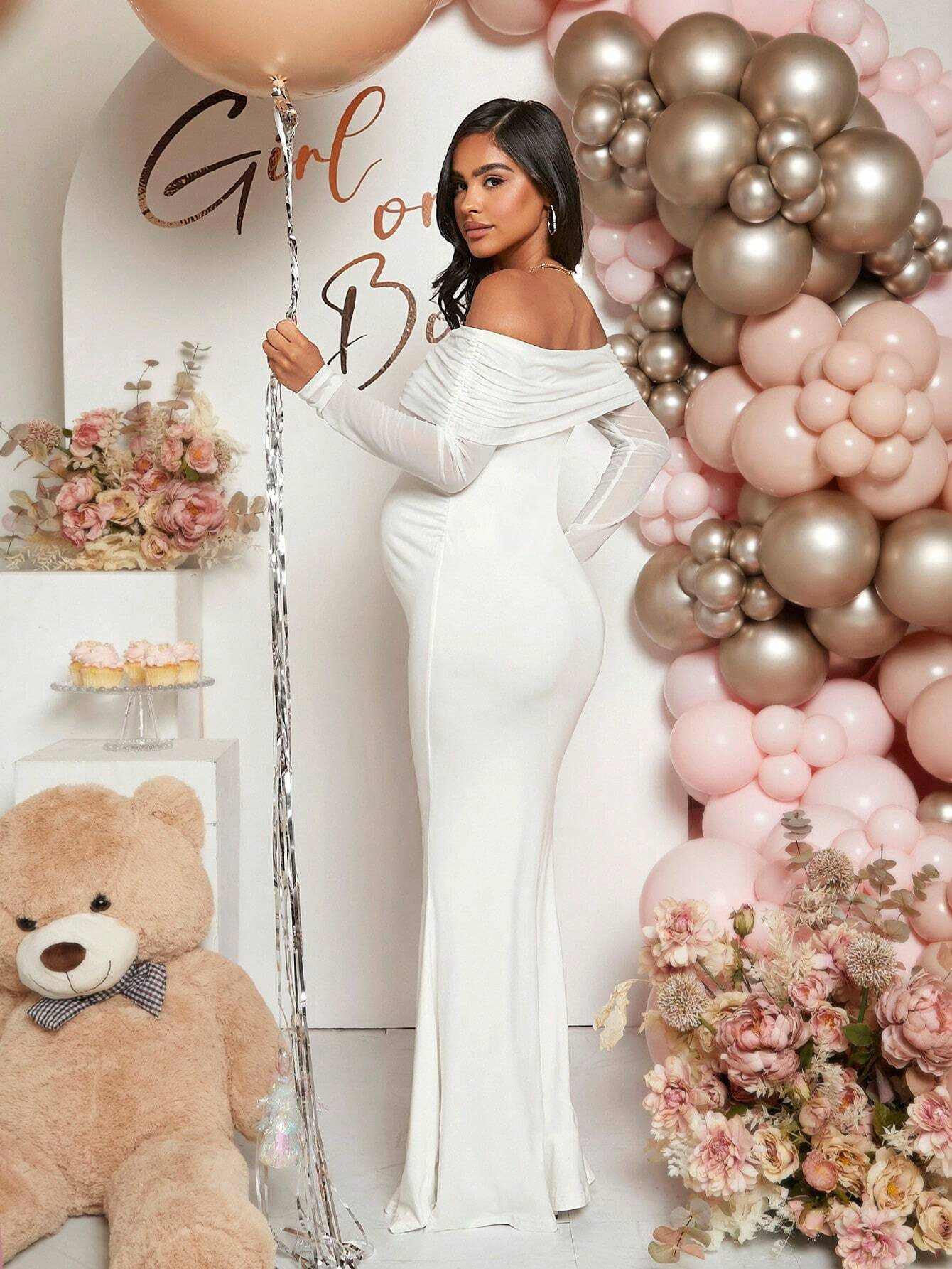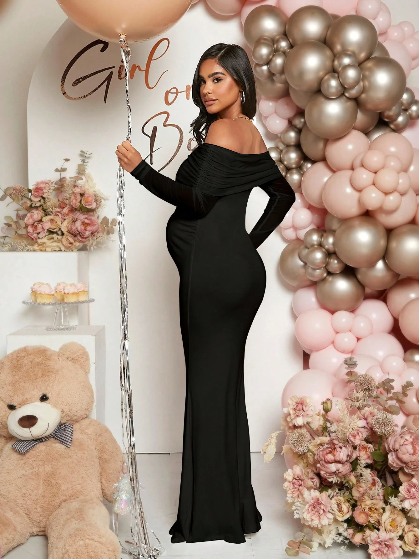 Платье для беременных с открытыми плечами, хвостовик, длинный рукав, европейский и американский стиль