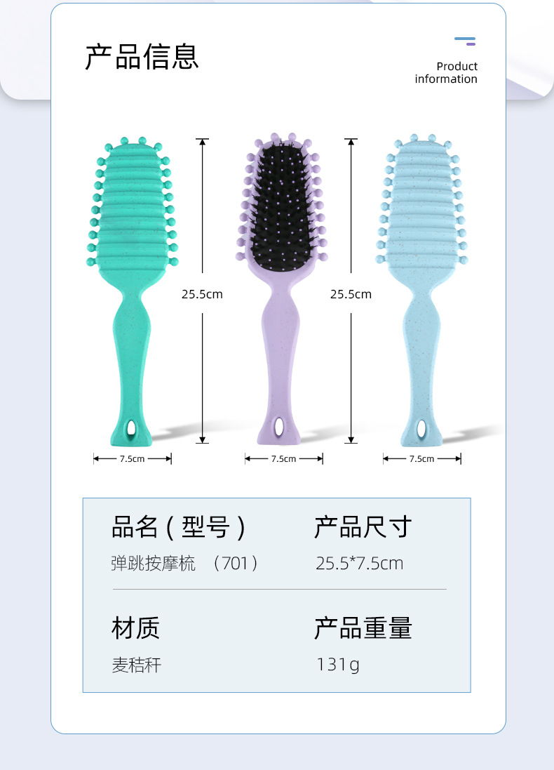 Массажная расческа из пшеничной соломы, расческа для укладки волос, расческа для сглаживания, расческа с эффектом упругости, универсальная