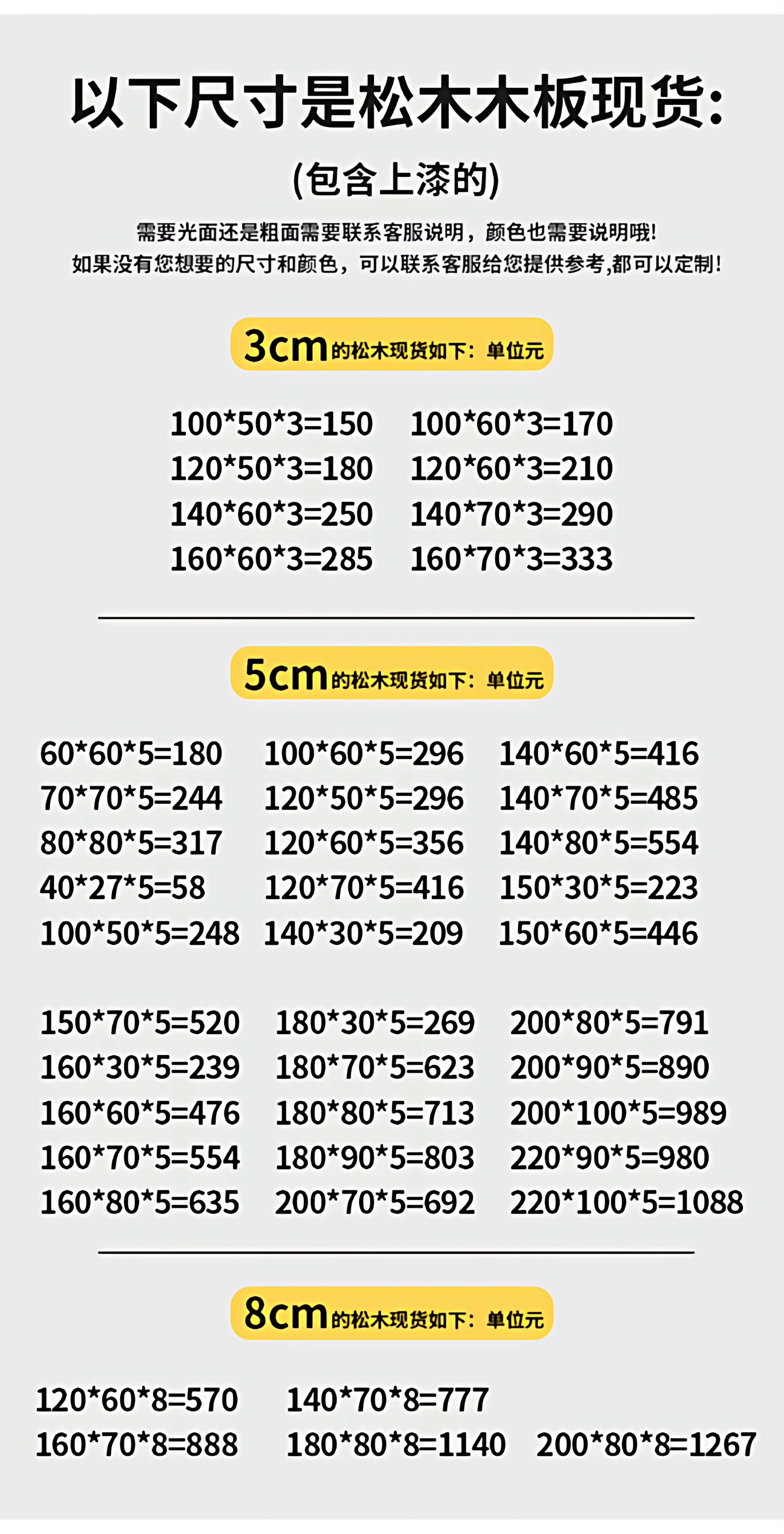 ![]() | Imported pine wood 100x60x3 (cm) | ¥181.3 / ≈ 2 187 ₽ | 296 | 5947250976267 | |