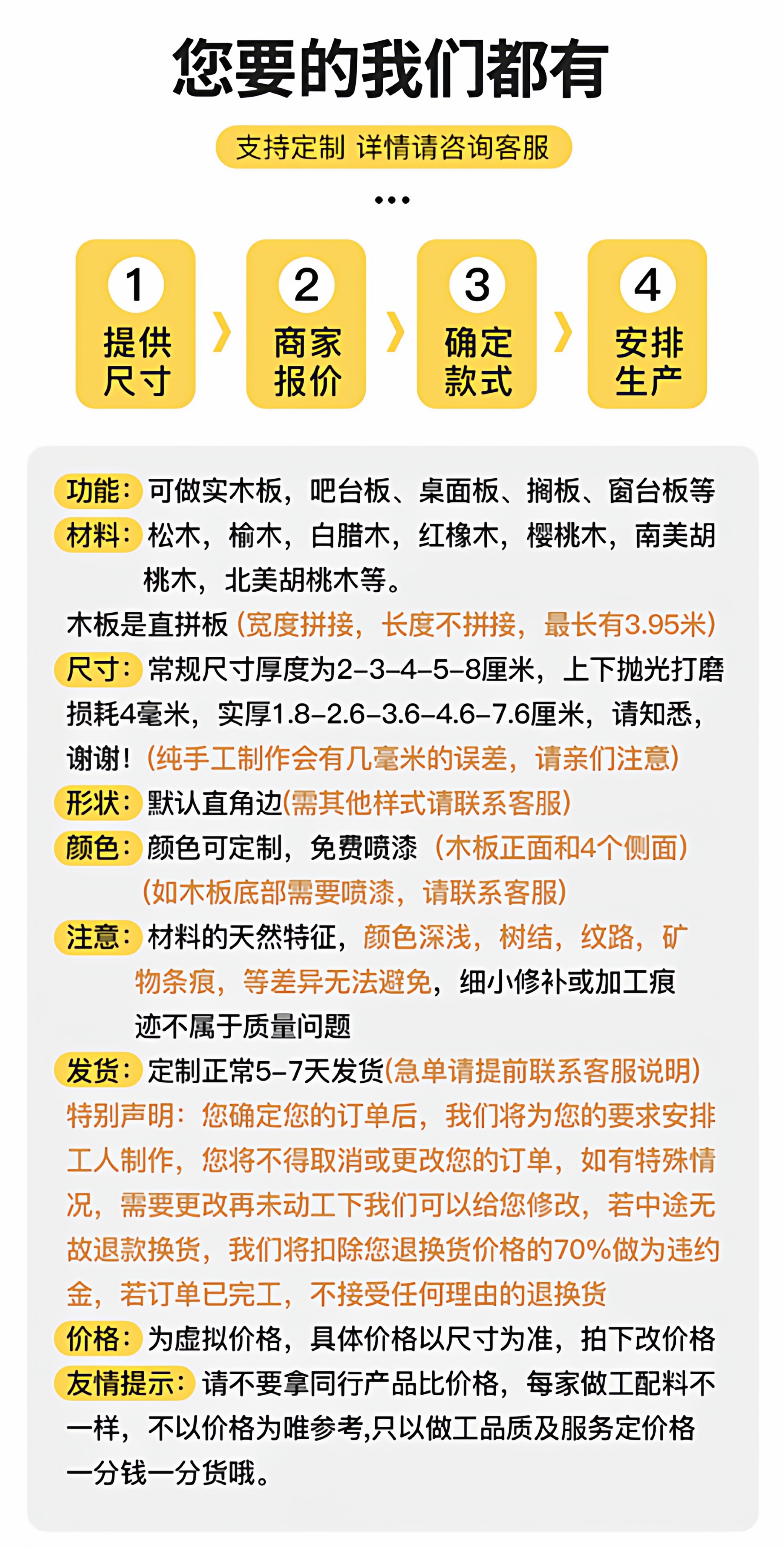 ![]() | Customized area (pure solid wood loss 3-4 mm) color optional - free processing of shape | ¥99.0 / ≈ 1 194 ₽ | 0 | 5947250976266 | |