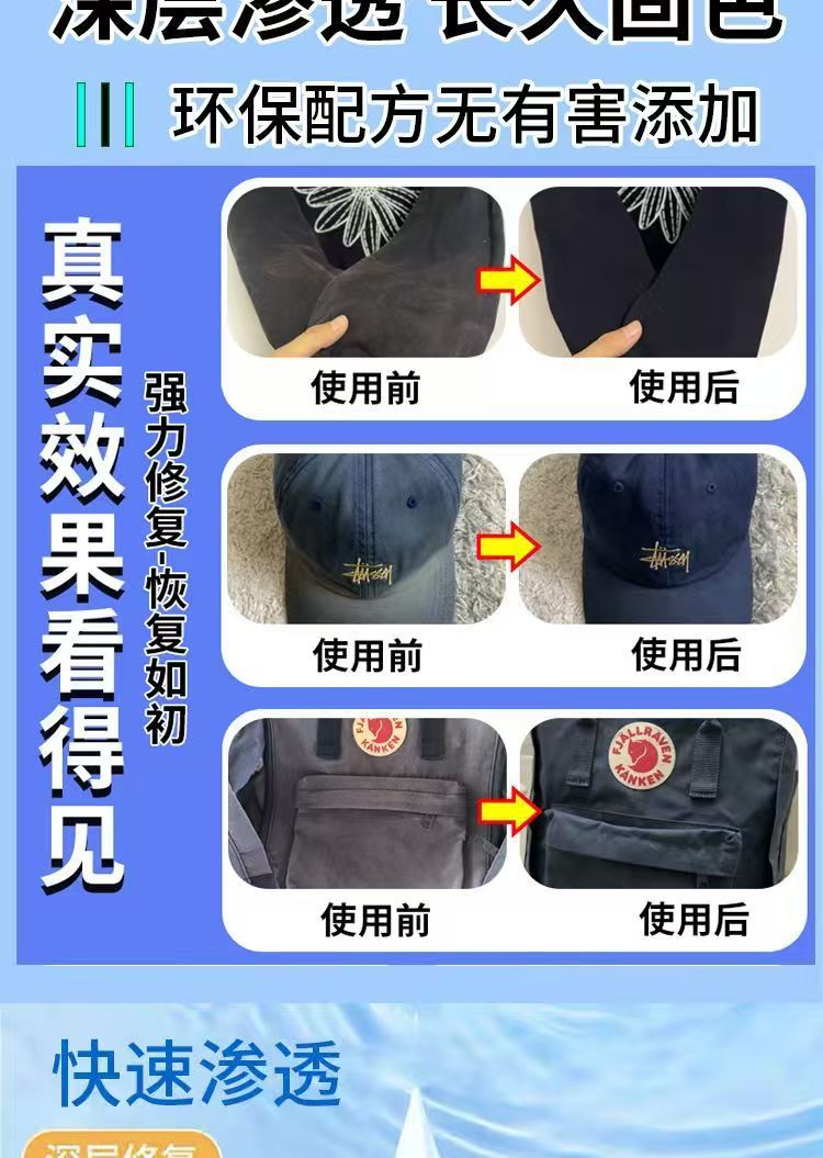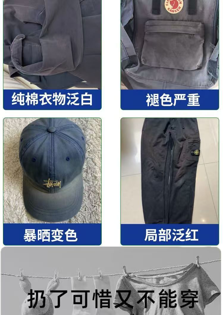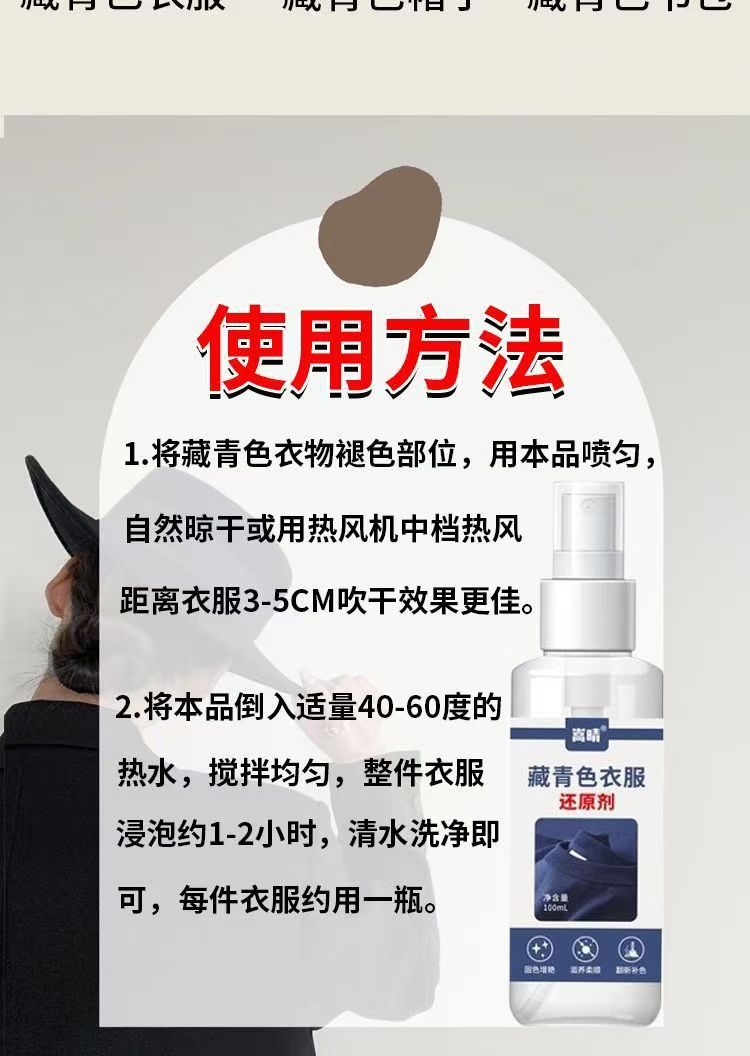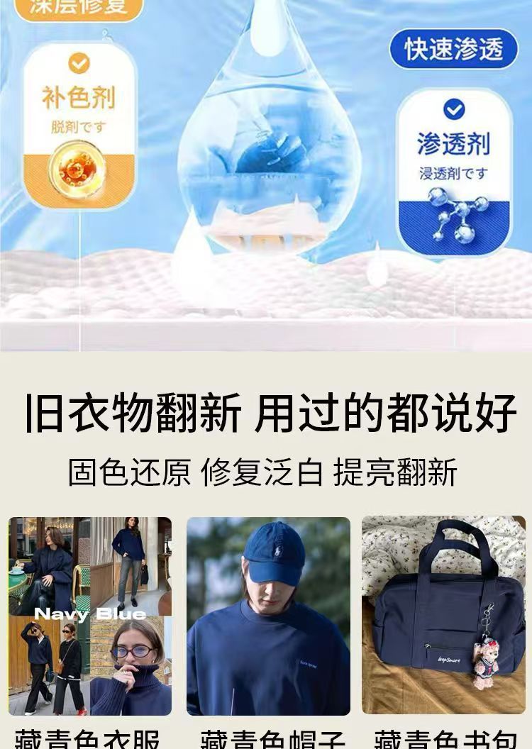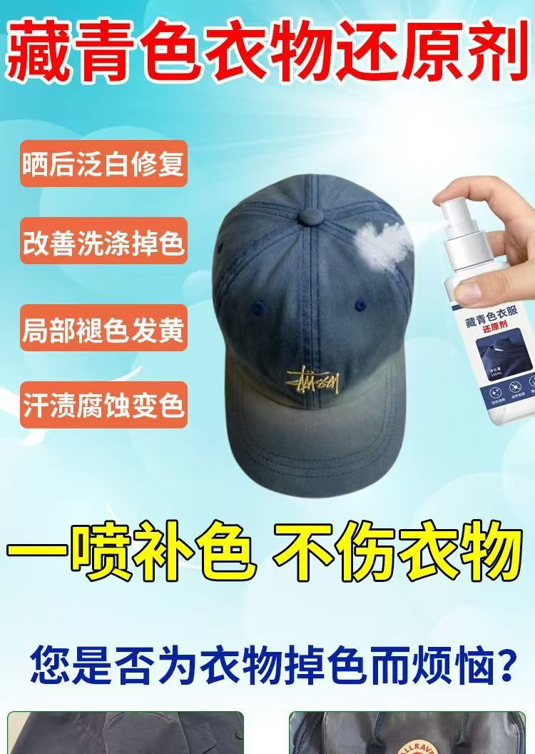 Средство для уменьшения цвета темно-синей одежды, восстановление выцветания одежды и головных уборов, специальное средство для восстановления и фиксации цвета