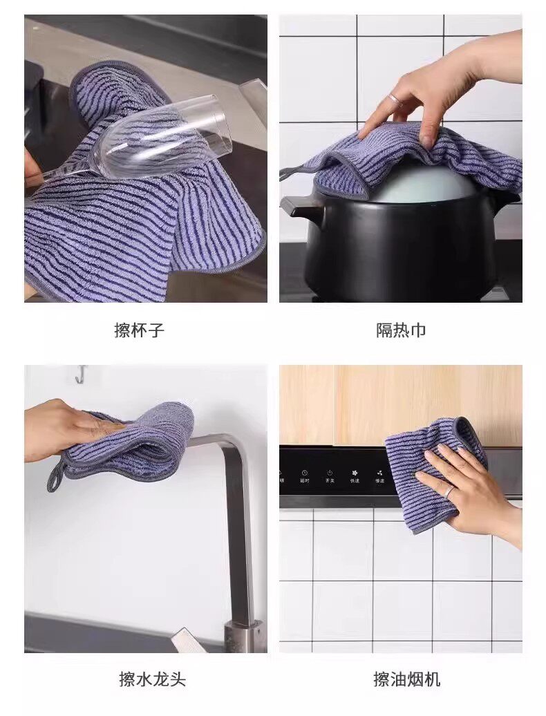 Полосатая тряпка Fine stripes dishcloth, oil-soaked kitchen bamboo fiber, strong water-absorbent lint-free table towel, easy to wash