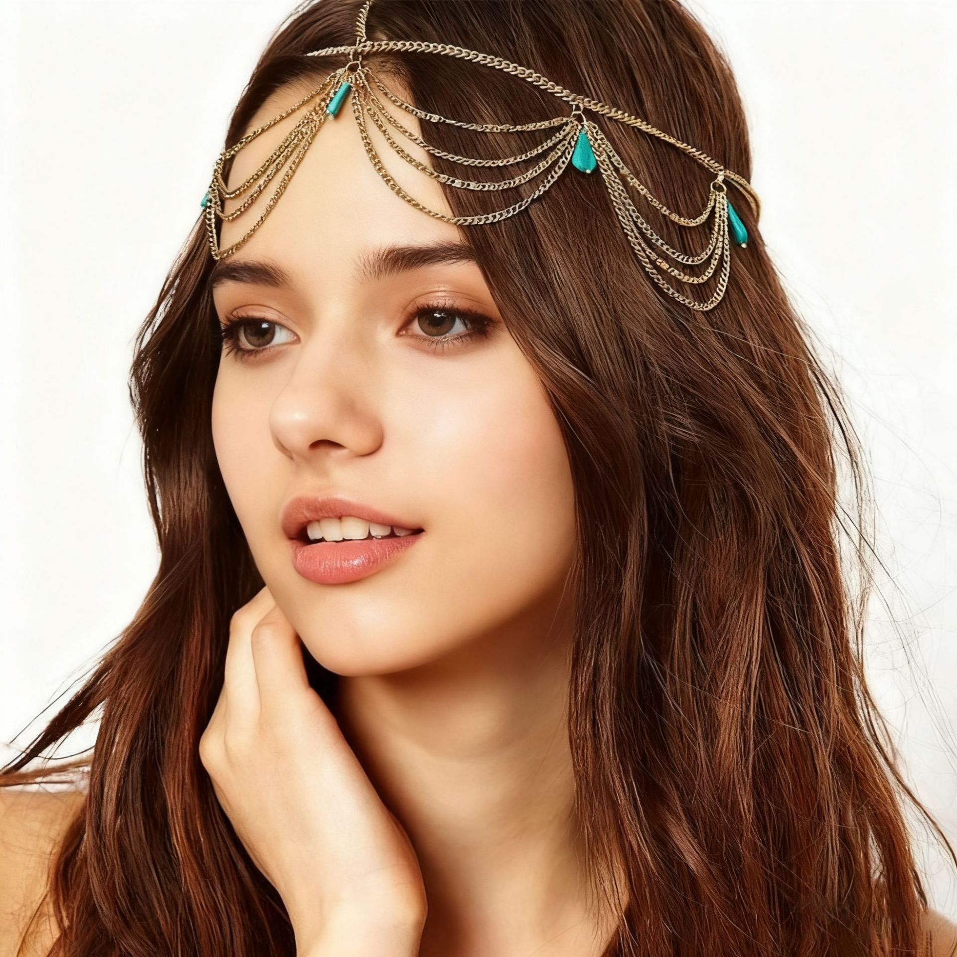 Европейская и американская ретро-модная повязка на голову с бирюзовыми каплями, экзотический стиль, кисточка, цепочка для волос