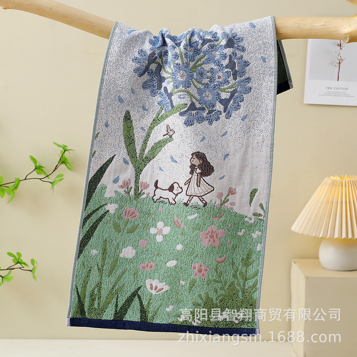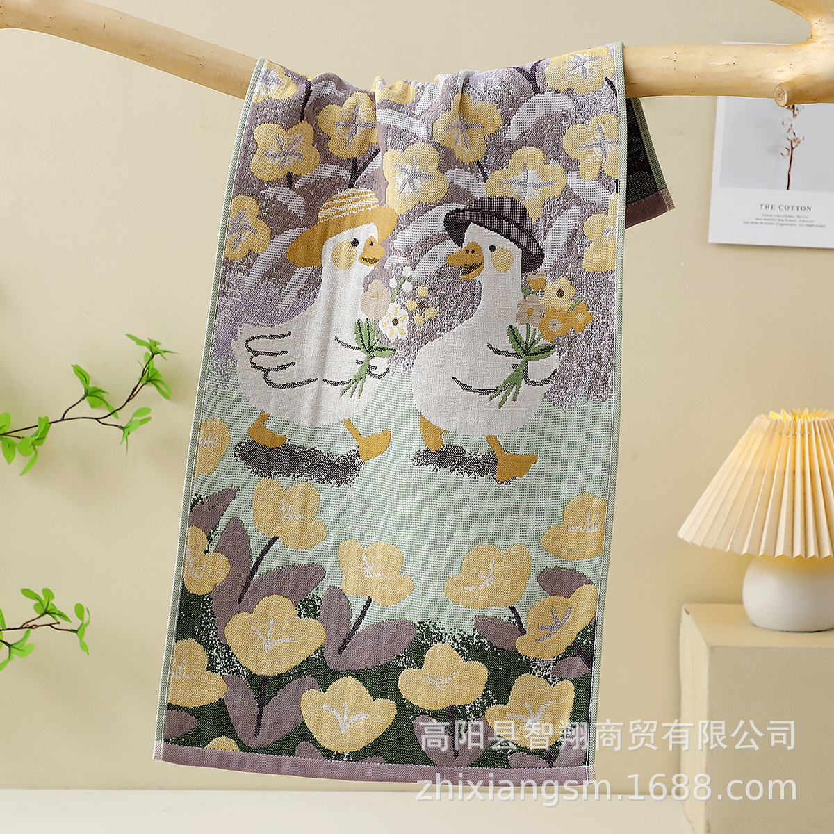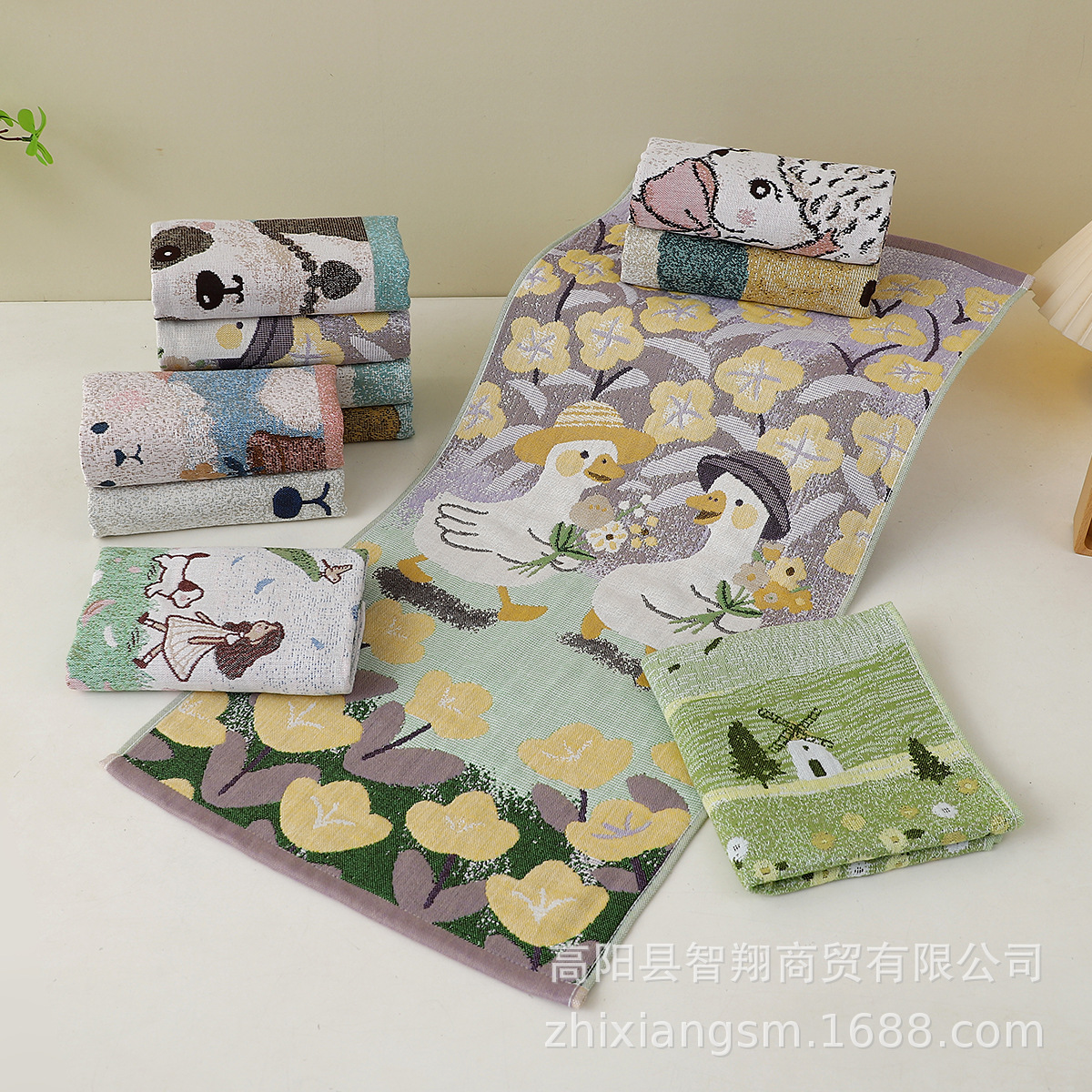 Чистое хлопковое марлевое полотенце, четырехслойное, для взрослых, впитывающее, быстро сохнущее, мультяшное жаккардовое милое полотенце, новый стиль для женщин