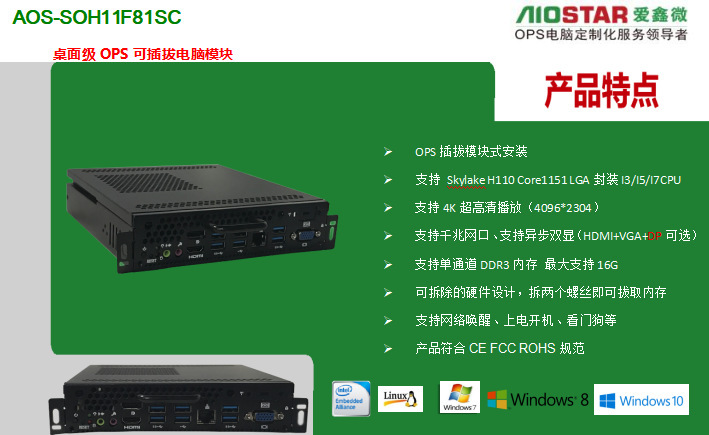 Компьютер Ops Plug-In, поддерживает процессоры I3/I5/I7, легкий, простой в установке, поддерживает 4K дисплей