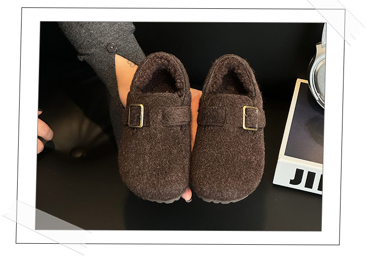 Обувь для детей в корейском стиле, повседневные утепленные шершащие туфли для девочек с флисовой подкладкой, новые зимние низкие хлопковые туфли для детей 2025 года
