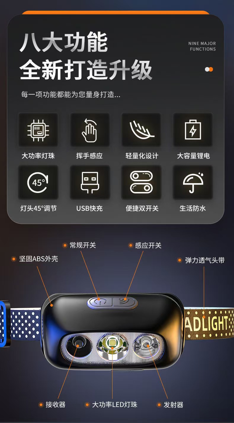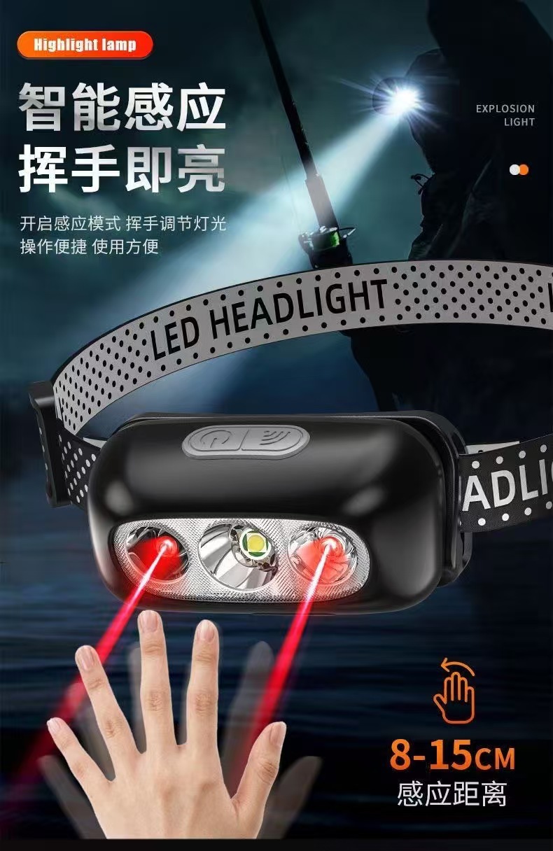 Суперяркий сенсорный налобный фонарь, светодиодный, налобный, перезаряжаемый, для ночной рыбалки, ультралегкий, водонепроницаемый