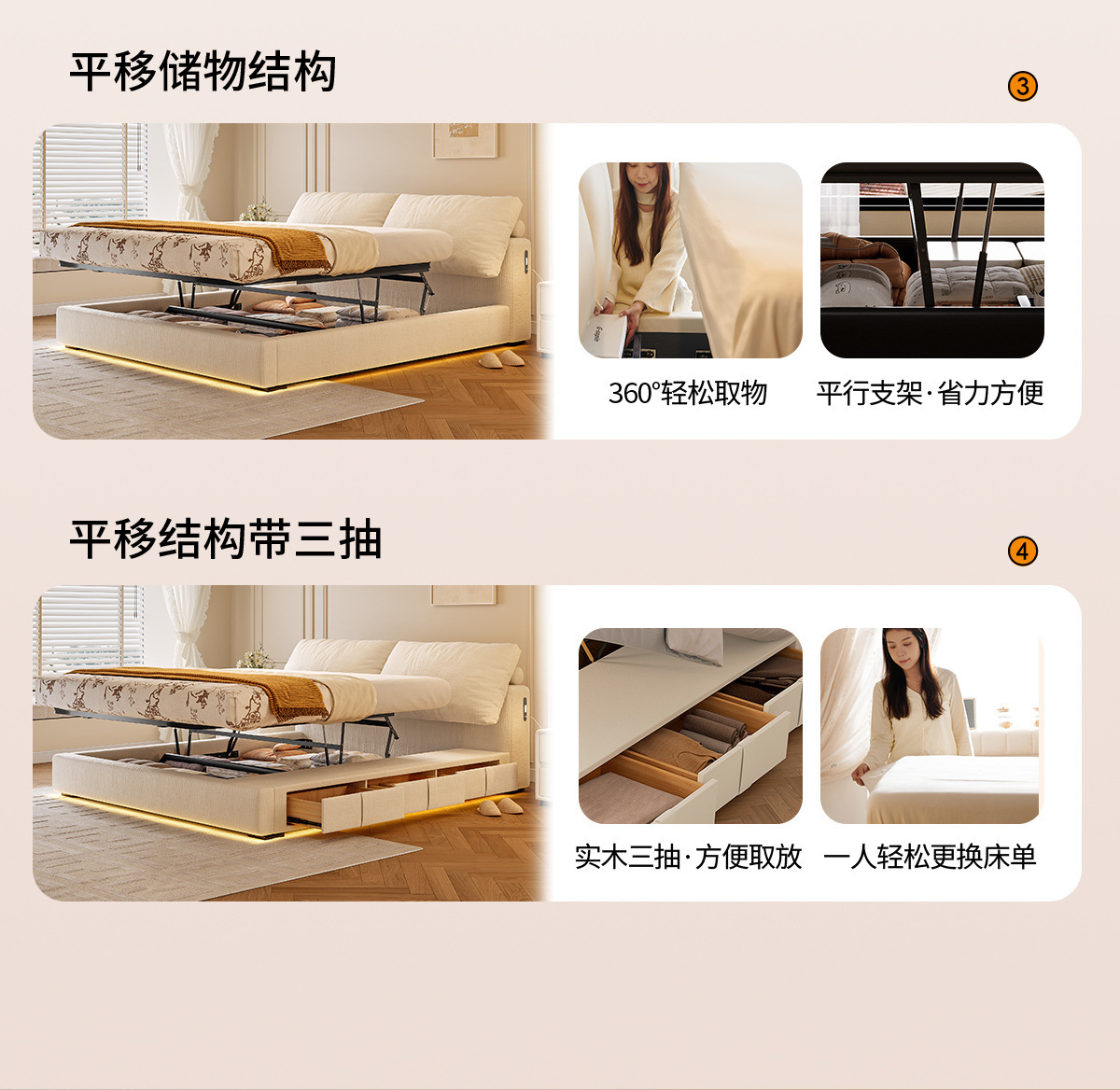 ![]() | Smart model/13 anti-cat claw cloth + bedside table*1/upgraded silent frame | 1500*2000mm translation storage + three-drawer structure | ¥3512.0 / ≈ 42 304 ₽ | 199 | 6021041304814 | |