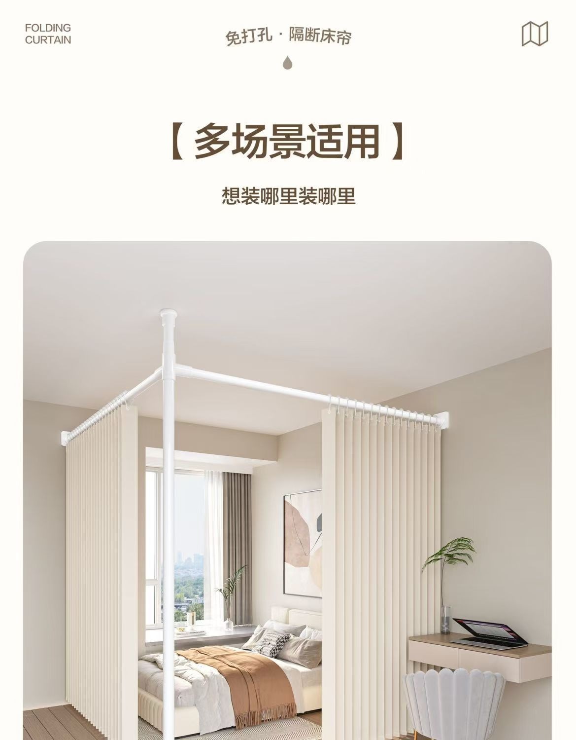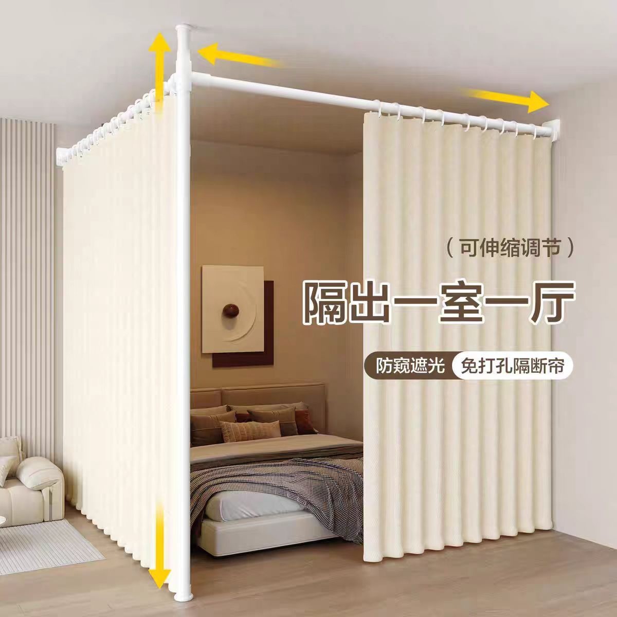 Раздвижная перегородка для гостиной, перегородка для домашнего офиса для защиты личного пространства, без сверления, выдвижная и теплоизолирующая занавеска