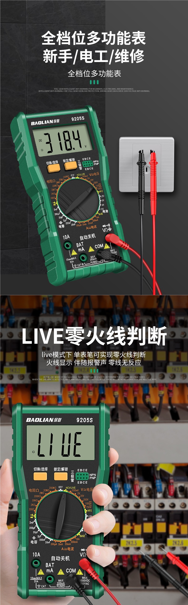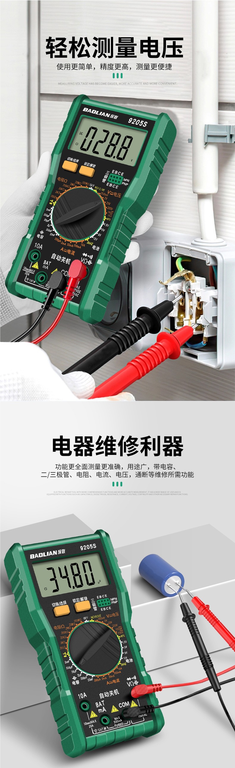 мультиметр Baolian цифровой высокой точности полностью интеллектуальный многофункциональный инструмент для электриков домашний набор