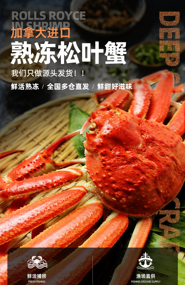 Вареный замороженный снежный краб, свежие ножки краба с сосновыми листьями, ножки королевского краба из Канады, морепродукты, замороженные морепродукты