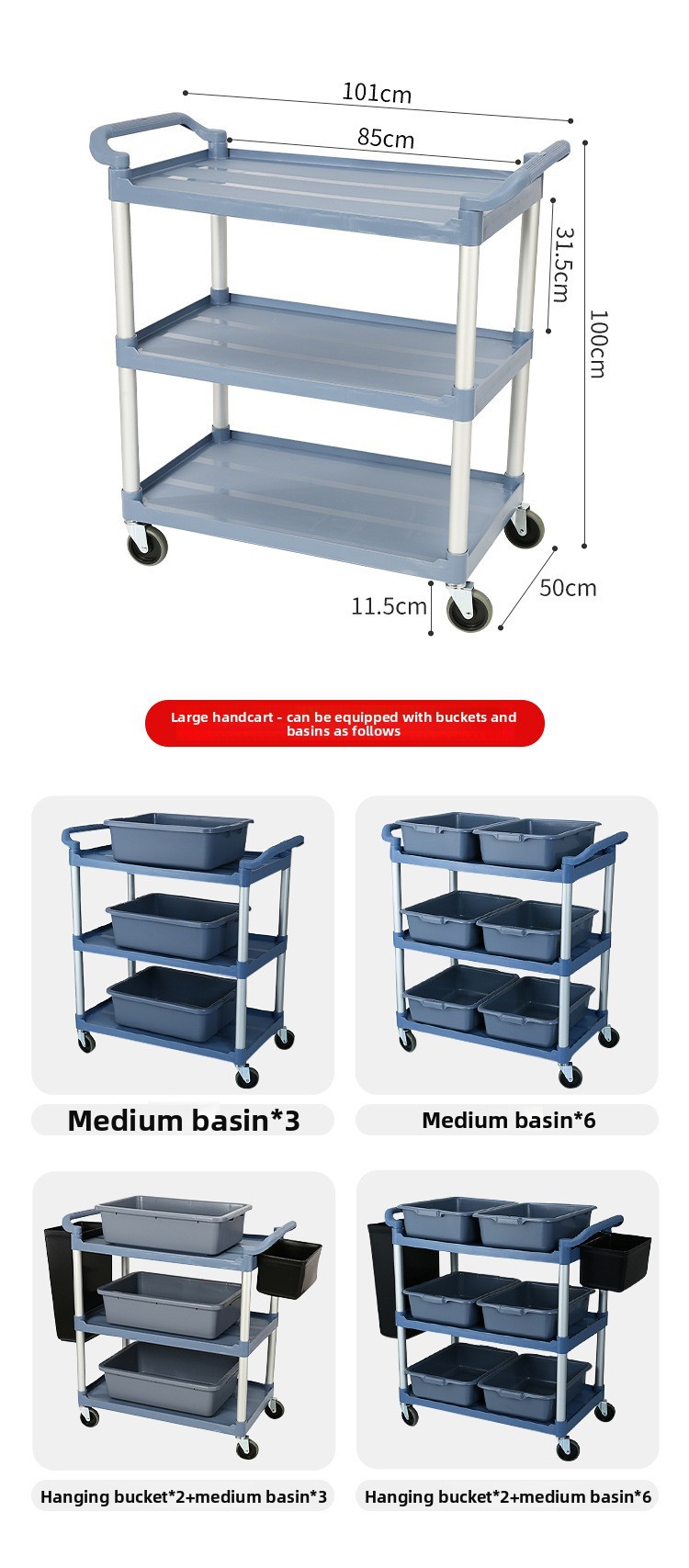 ![]() | Thickened [gray] medium three-story dining cart - silent wheels | ¥113.0 / ≈ 1 361 ₽ | 9858 | 5947457432168 | |