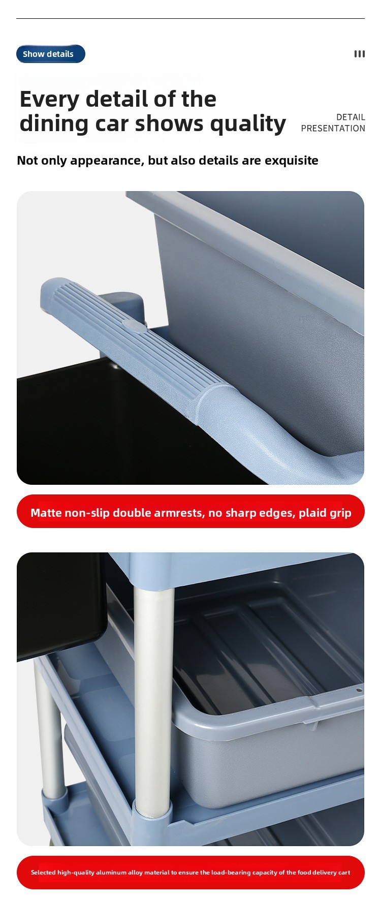 - Thickened Three-Layer Design: The special thickened three-layer design of this hotel service cart provides ample space for storing dishes and utensils, making it an efficient solution for restaurant and hotel environments.