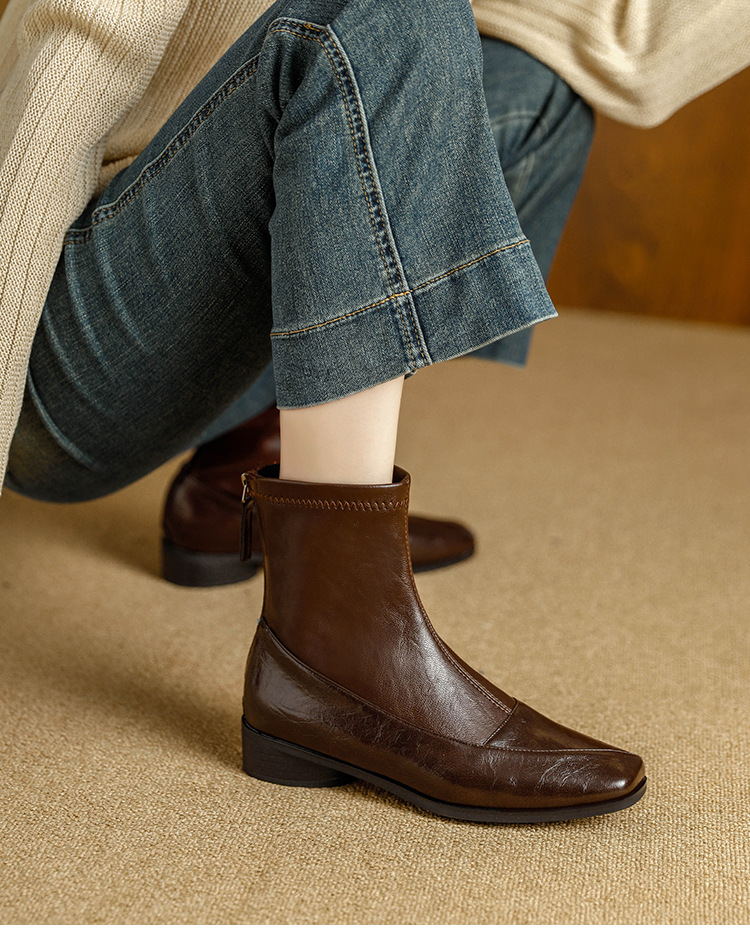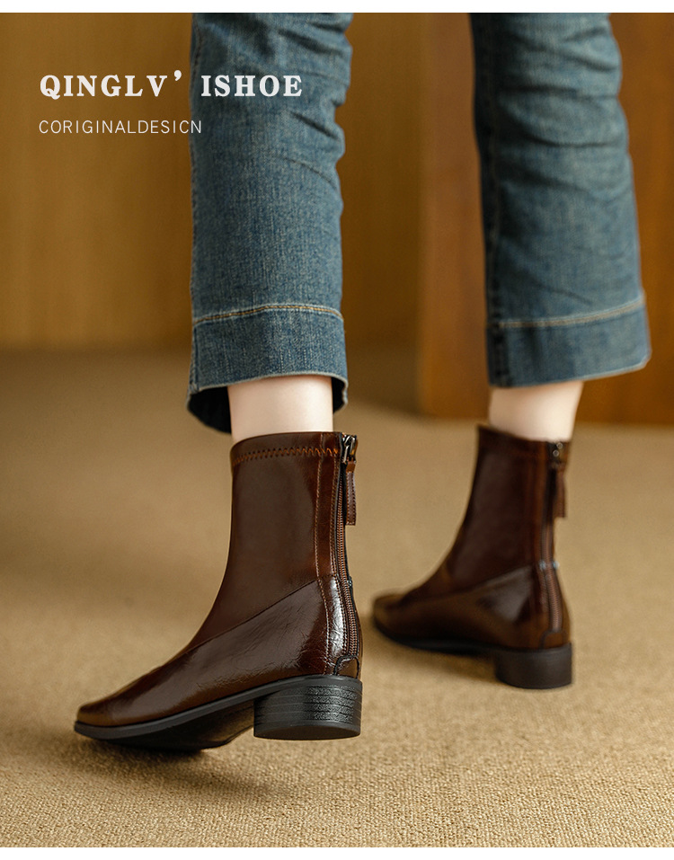 Ретро короткие ботинки с квадратным носом, новый осенний стиль, простые и универсальные ботинки Мартин, мягкая подошва, удобный задний замок