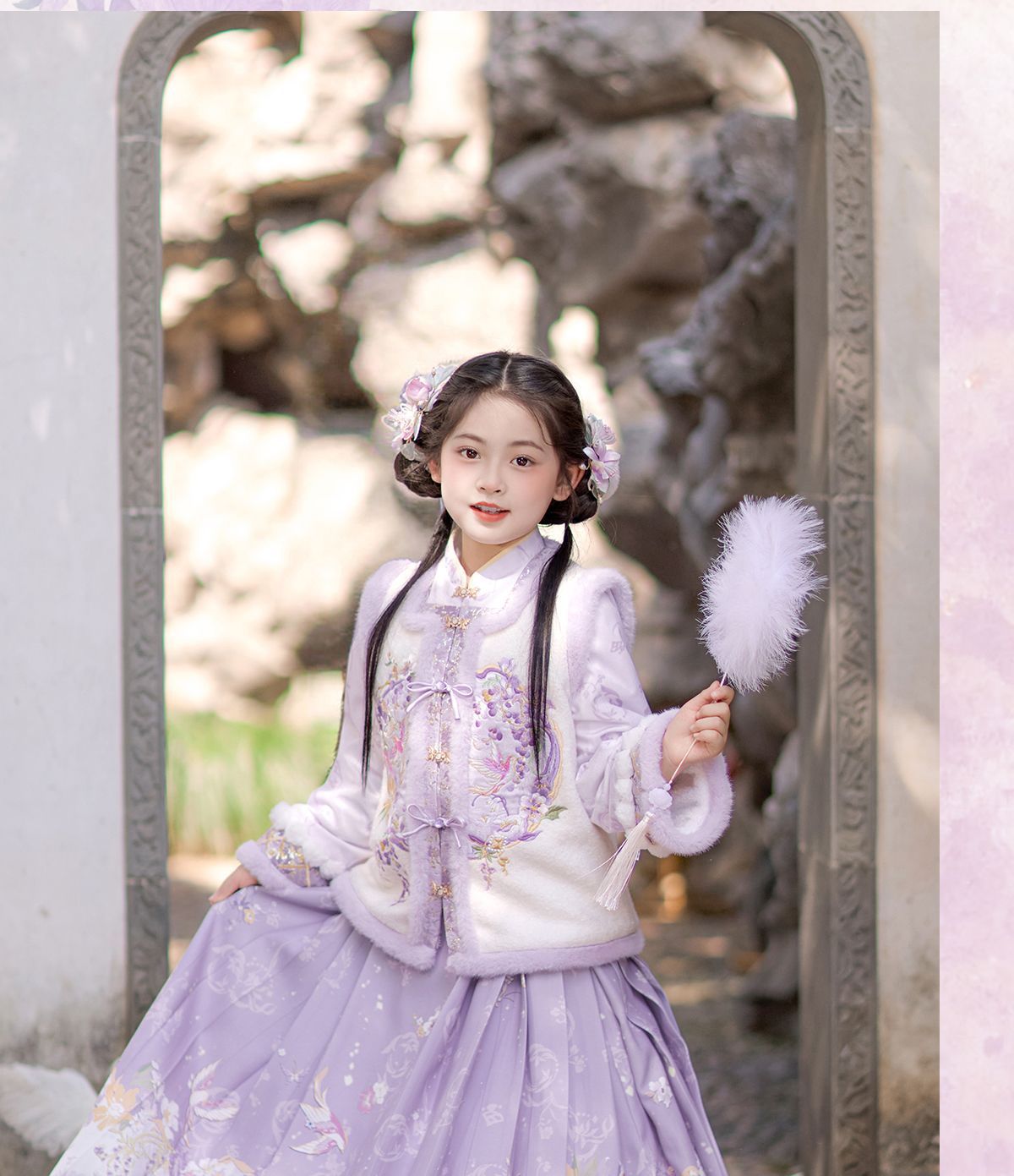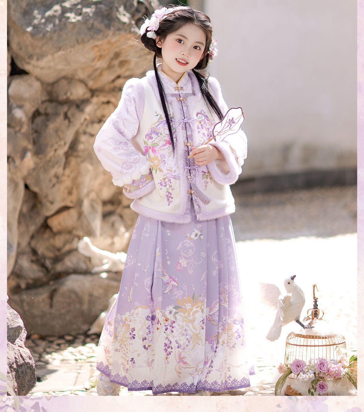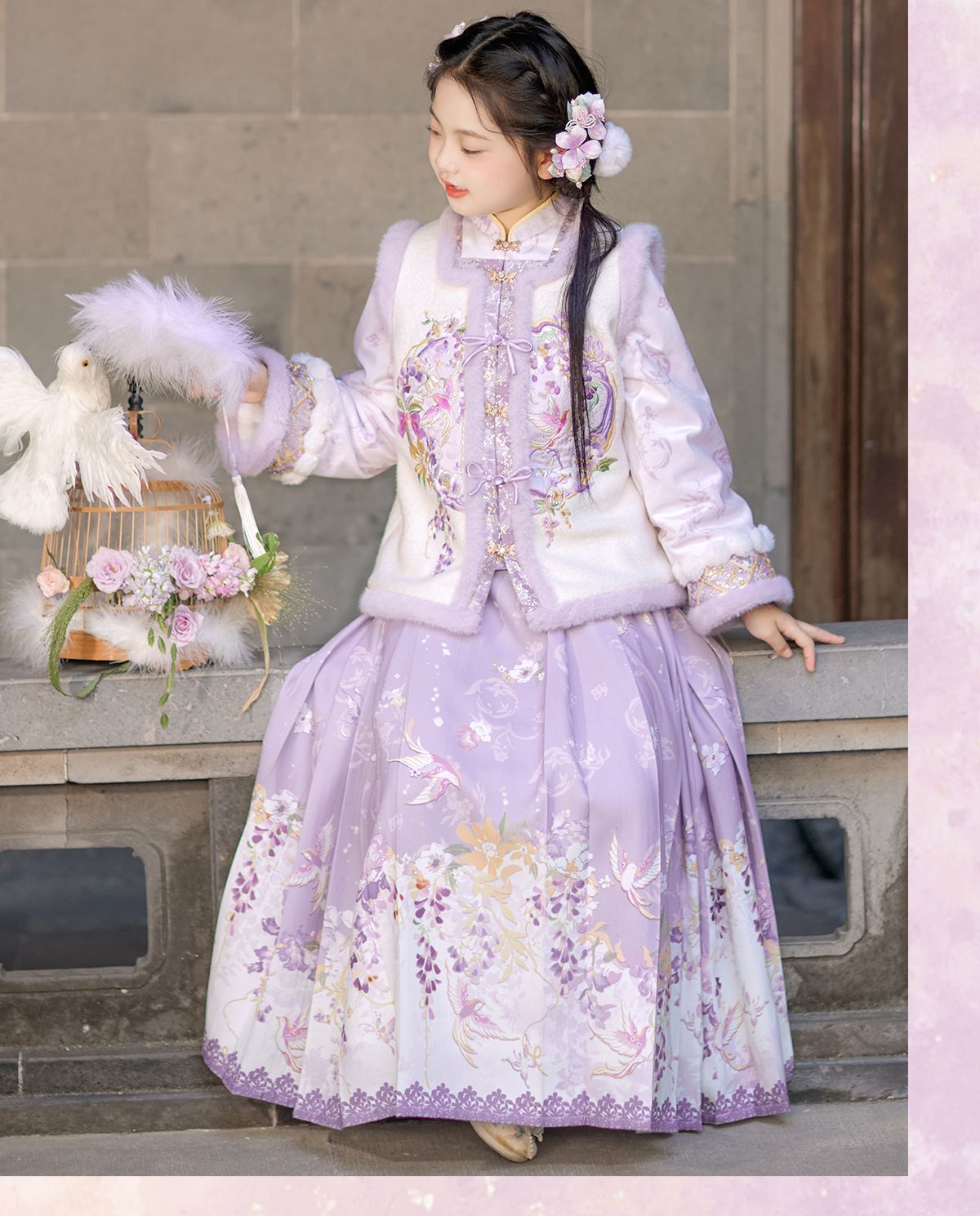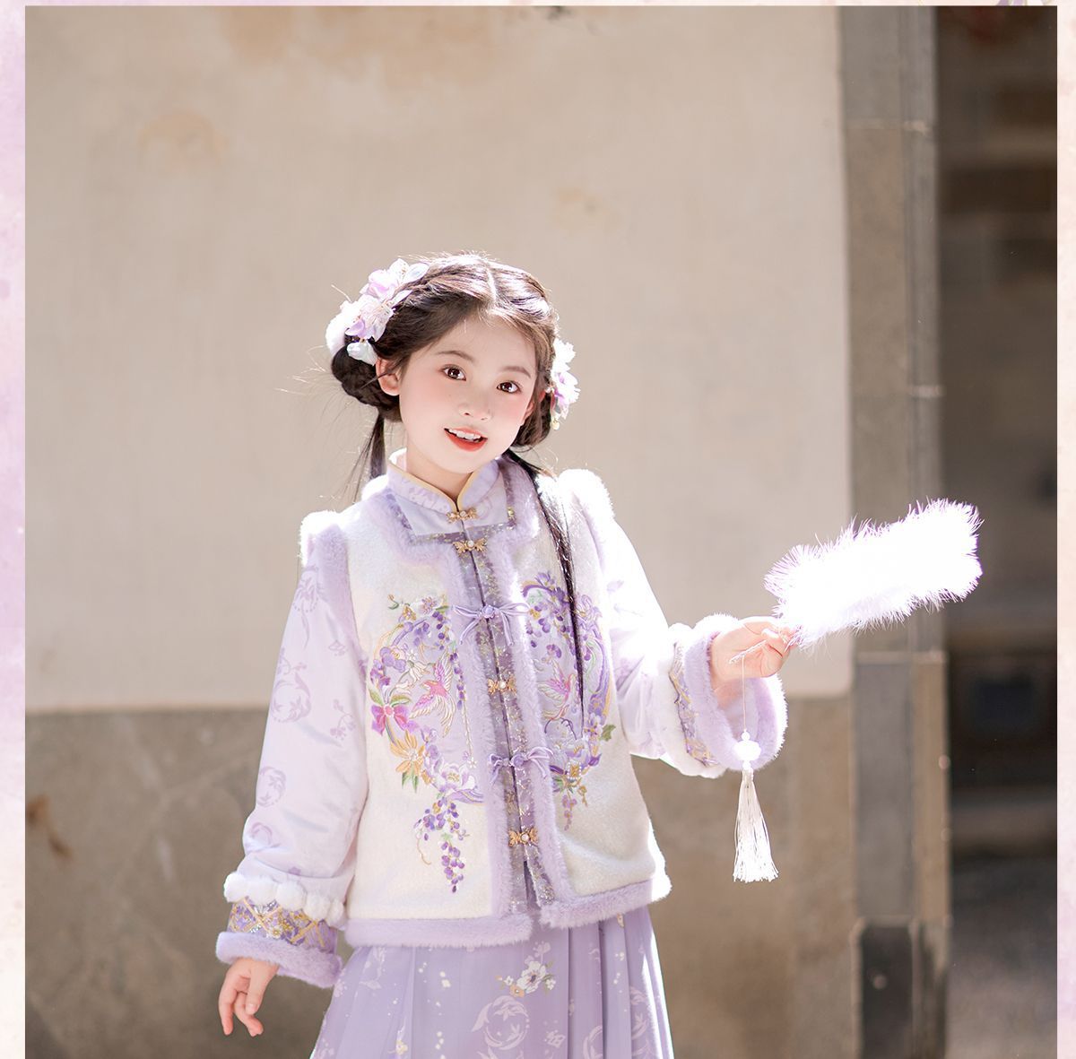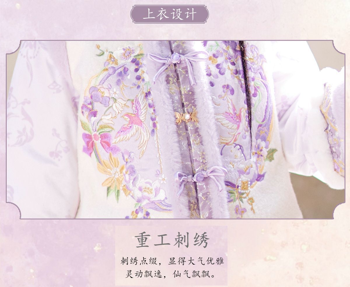 Зимний комплект ханфу для девочек 2025 года с флисом и утолщением, традиционный китайский стиль, зимнее платье для девочек