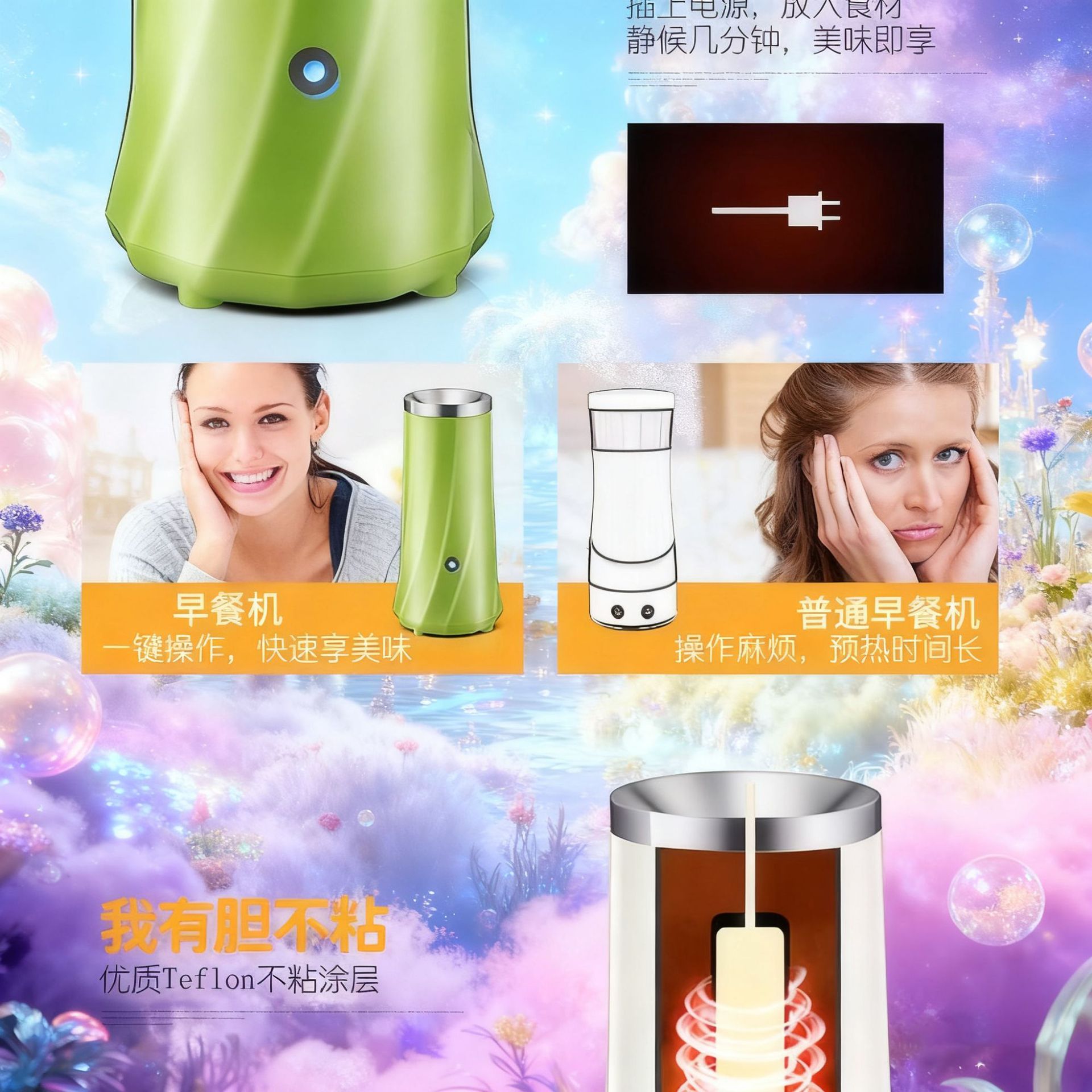 Автоматическая умная машина для яичных рулетов, мини-машина для завтрака, машина для яичных рулетов, чаша для ленивого омлета, антипригарная сковорода