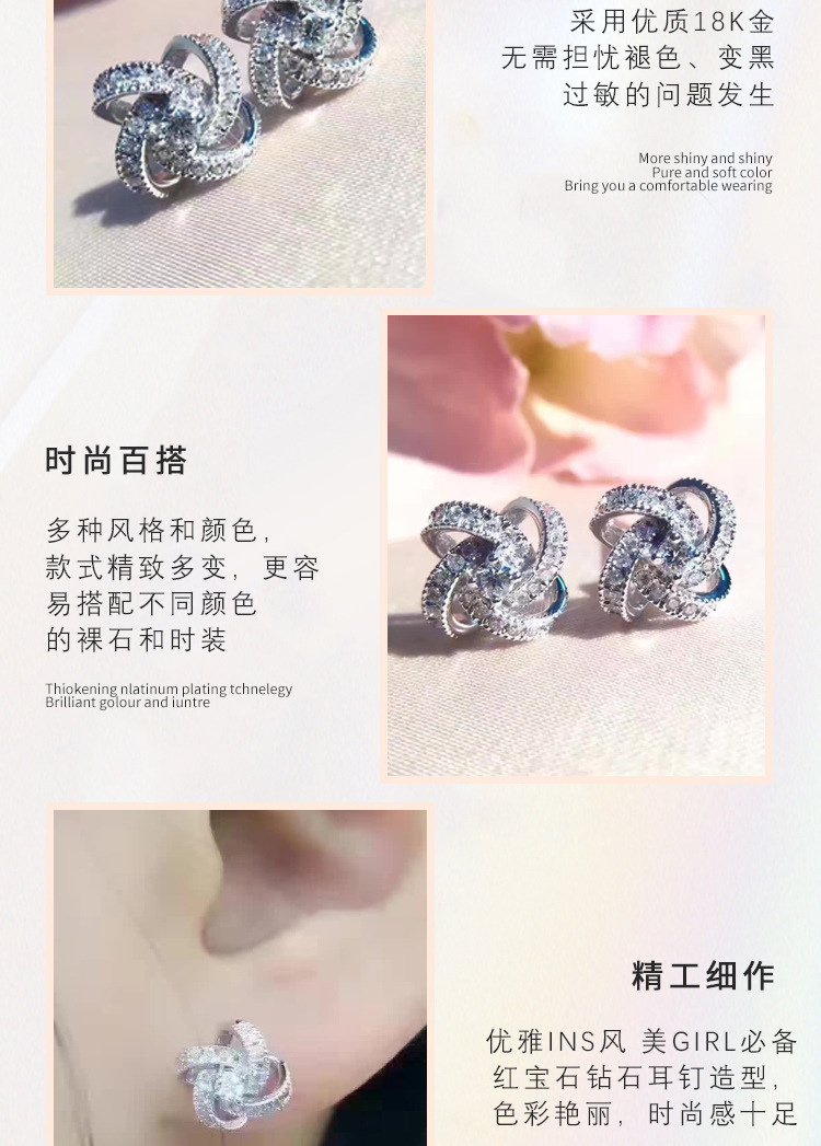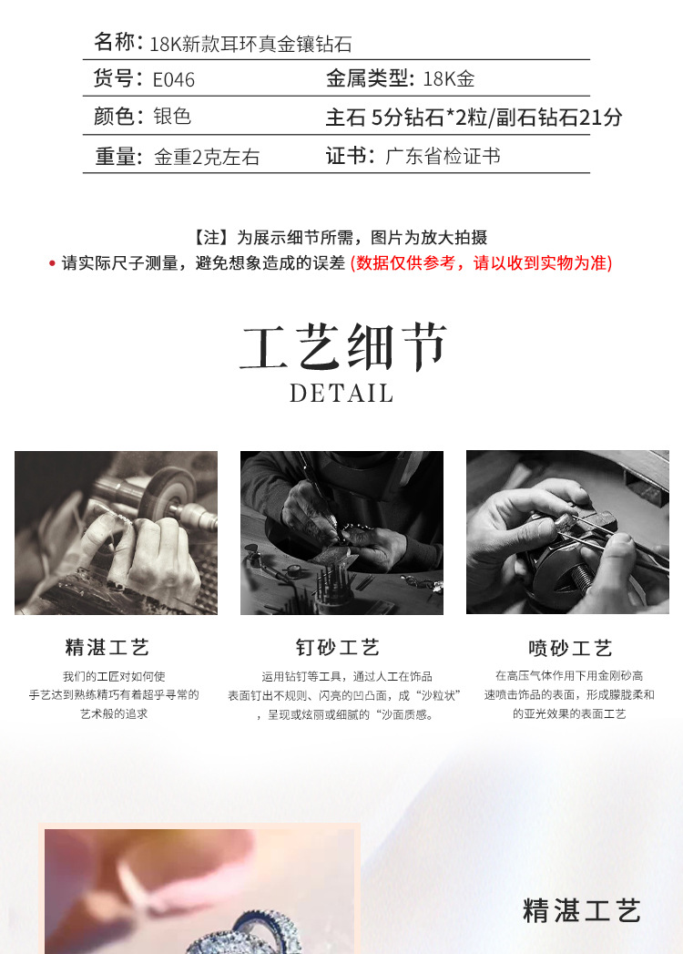 Серьги с бриллиантами 18K от производителя Гуанчжоу, простые инкрустированные настоящими бриллиантами
