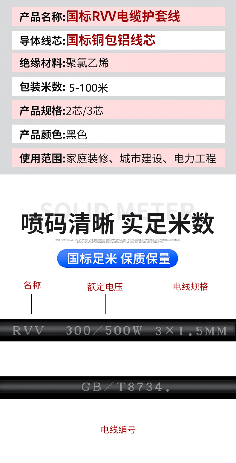 Кабель Rvv национального стандарта, изолированный провод 2-жильный 3-жильный 1/1.5/2.5/4/6 квадратный двухжильный мягкий трехфазный силовой кабель